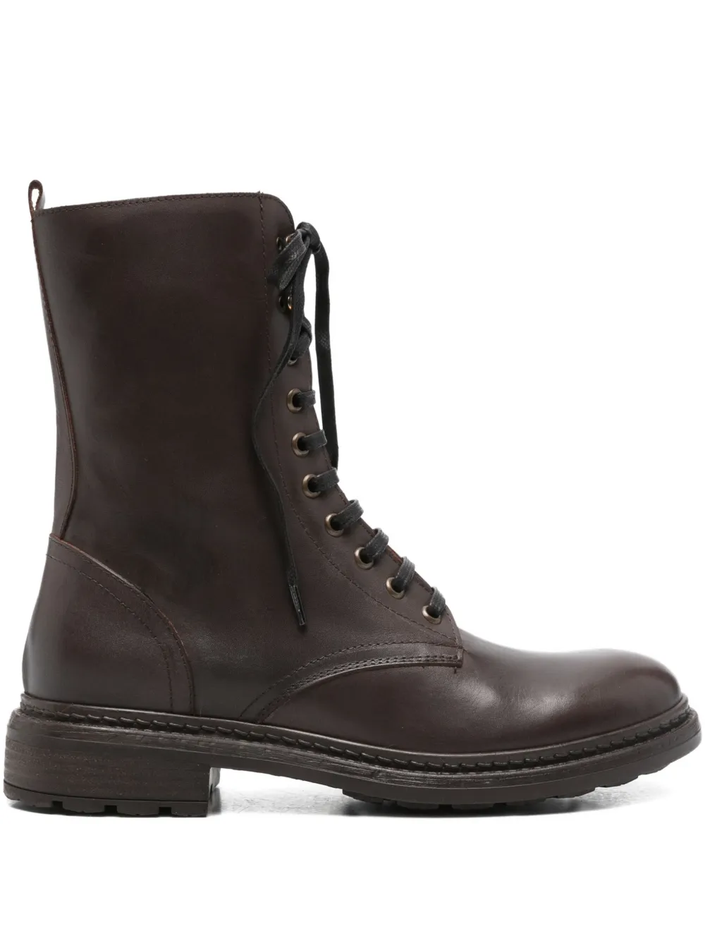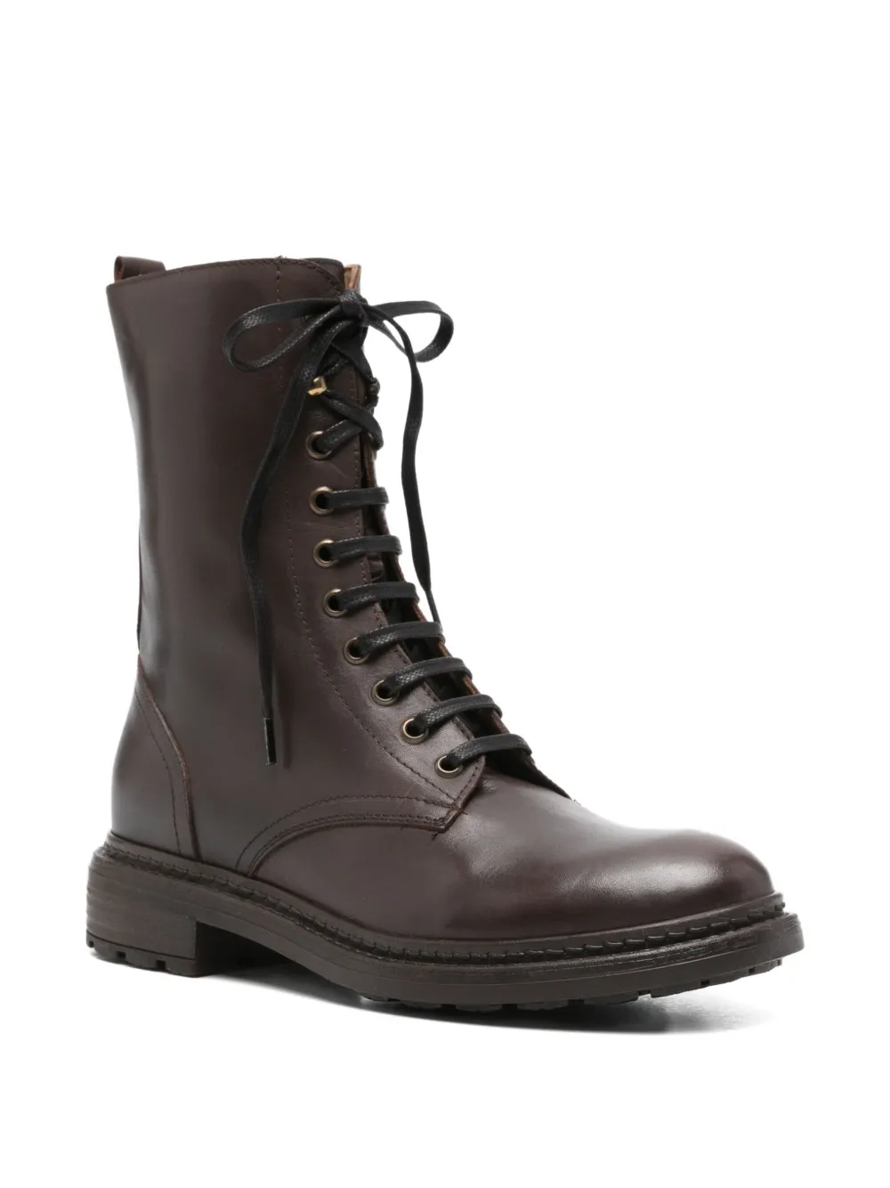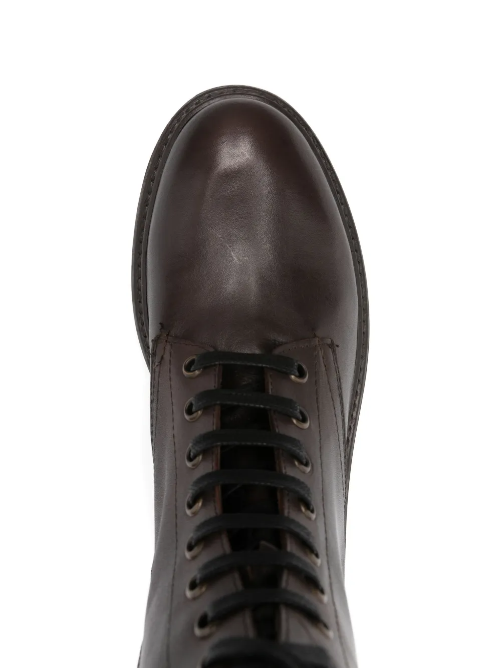 Темно-коричневая телячья кожа, шнуровка, круглый носок, застежка-молния сбоку