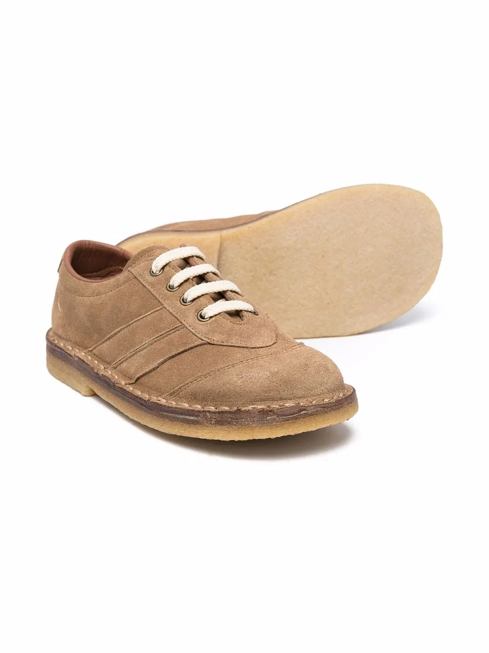Коричневый, замша из телячьей кожи, Кожа, шнуровка спереди, закругленный носок, плоская резиновая подошва и стелька с логотипом.