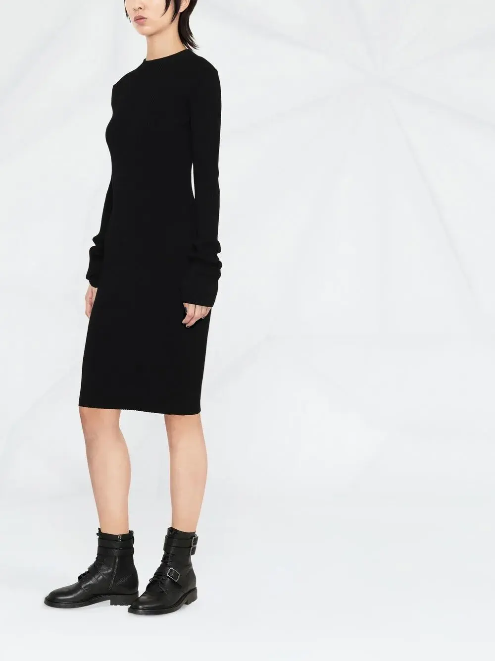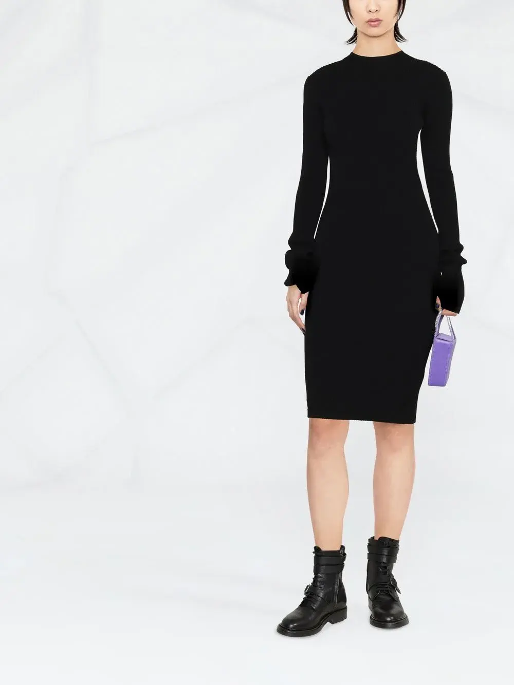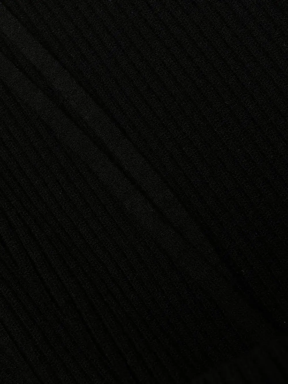 Черный, трикотажный материал, шнуровка, круглый вырез, длинные рукава и длина по колено.