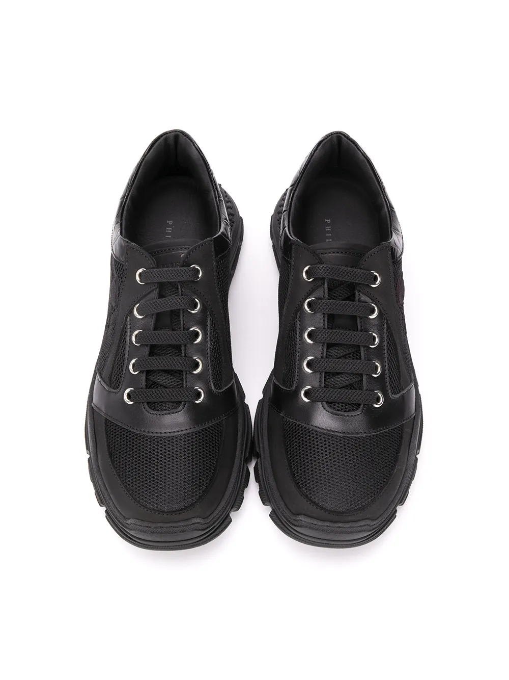 Кеды на шнуровке от Philipp Plein (Филипп Плейн). Закругленный носок, верх в сетку, застежка на шнуровке, фирменная стелька и плоская резиновая подошва. Цвет: черный.