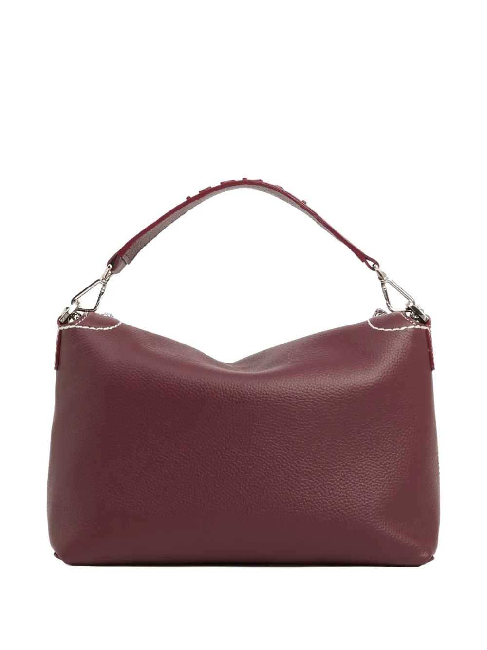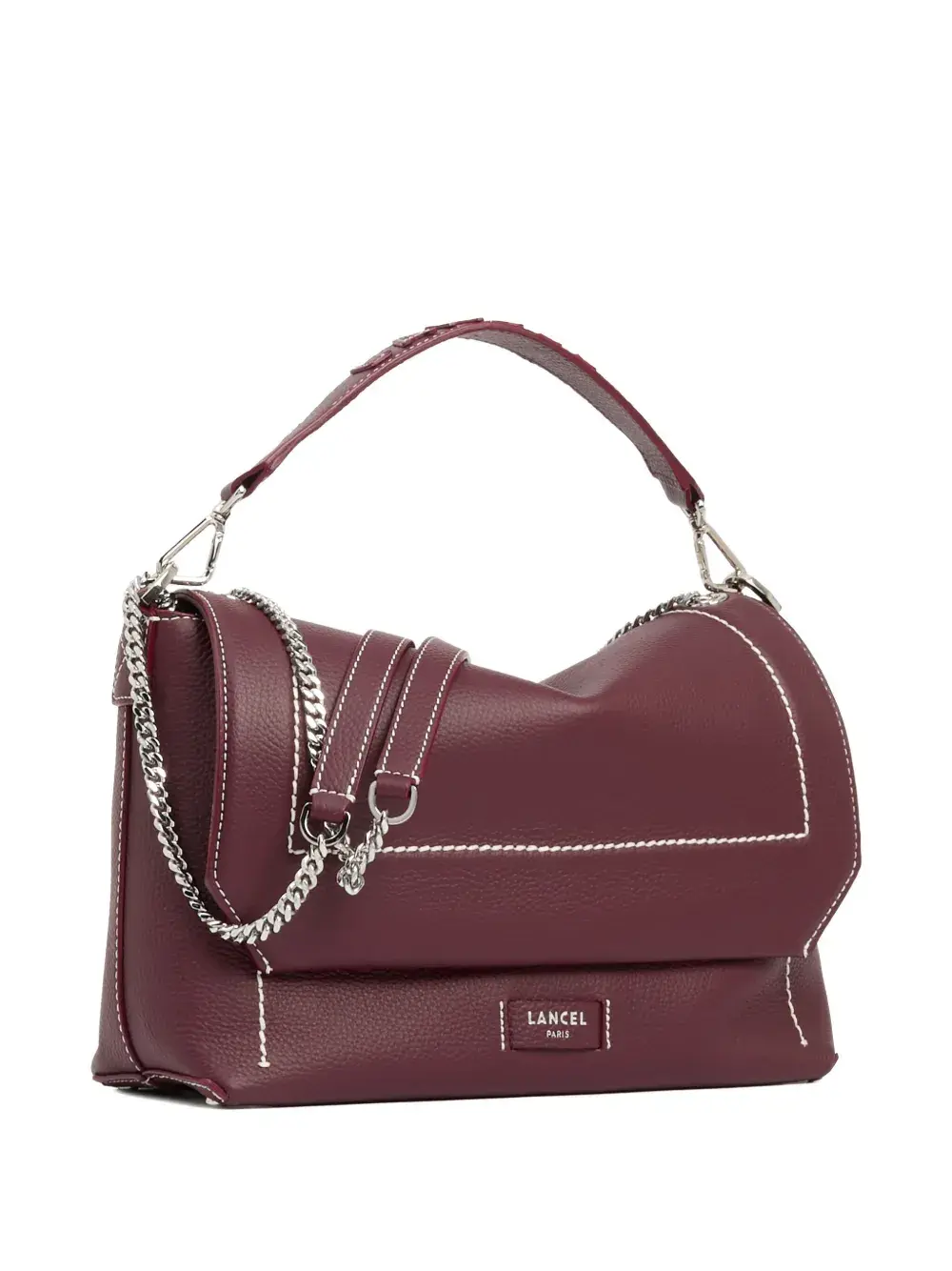 Верхняя ручка из бордовой кожи, застежка на клапан с цепочным ремнем