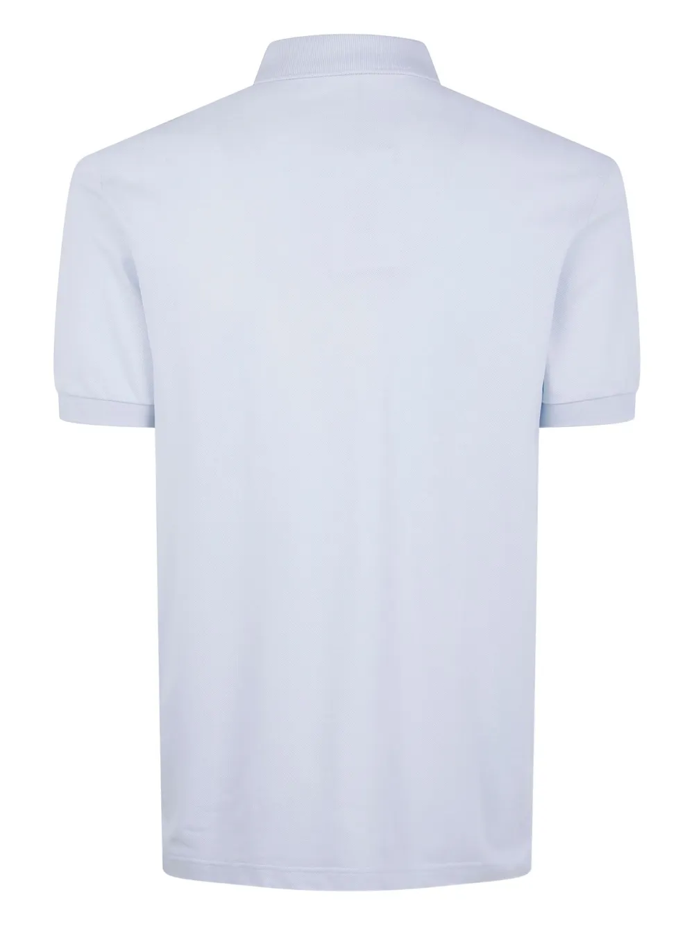 Короткие рукава, планка с двумя пуговицами, вышитый лавровый венок, текстура хлопкового пике, ледяного цвета