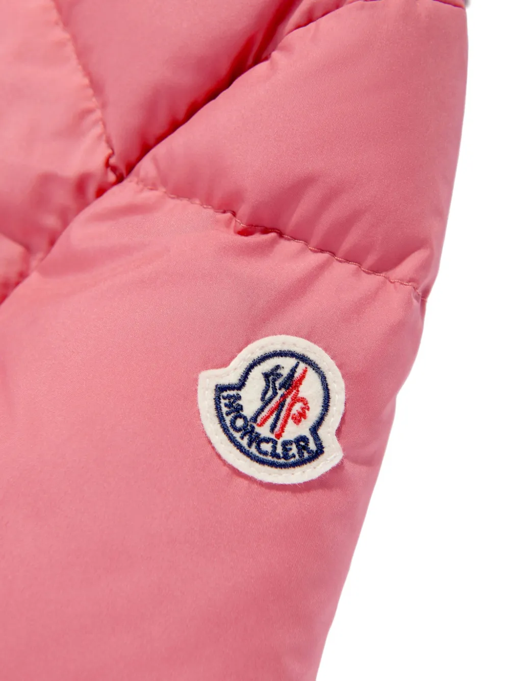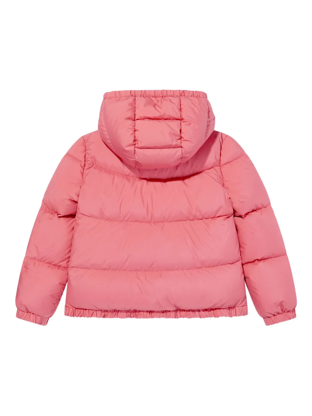 Розовый стеганый дизайн, капюшон, застежка-молния, эластичные манжеты, нашивка с логотипом.