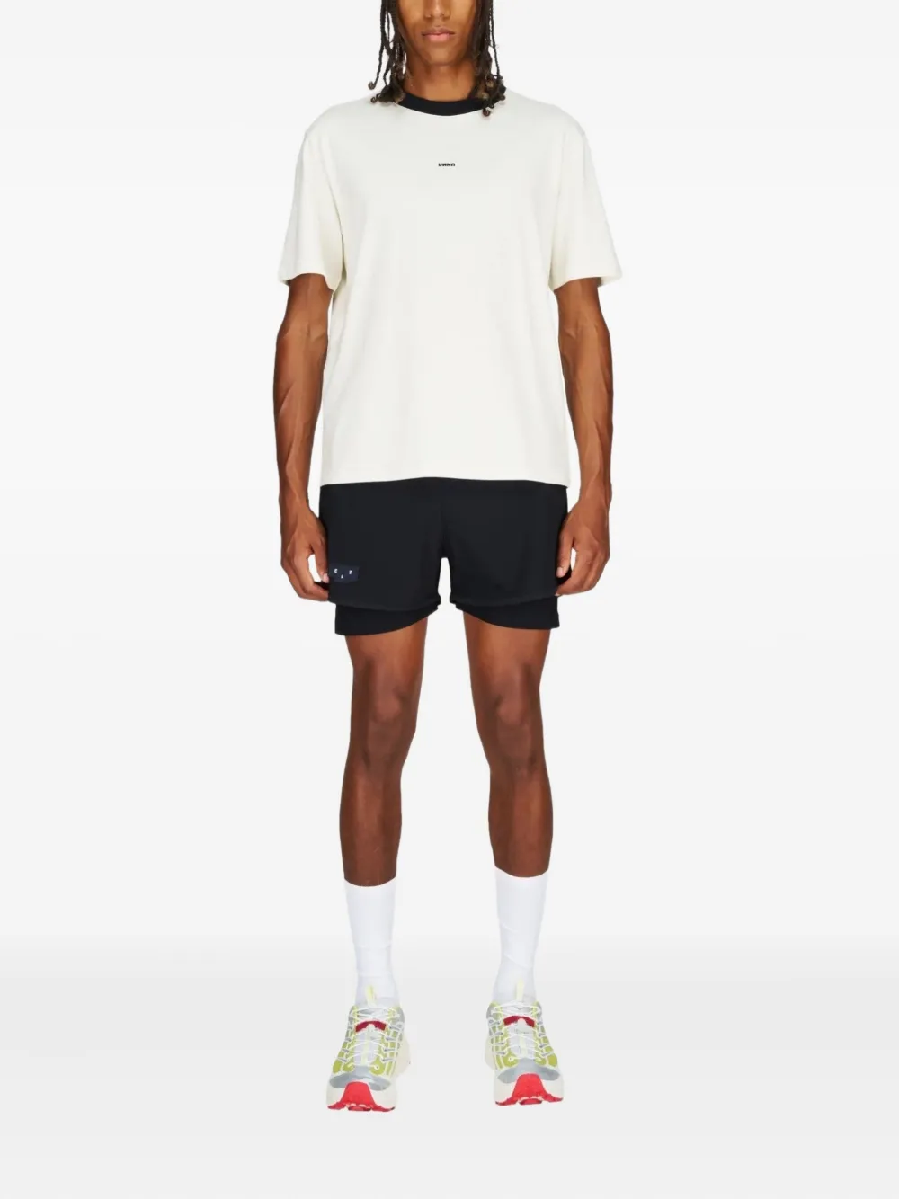 Черный двухслойный боковой карман, закругленный край, принт сзади