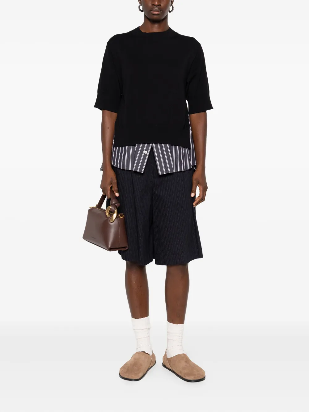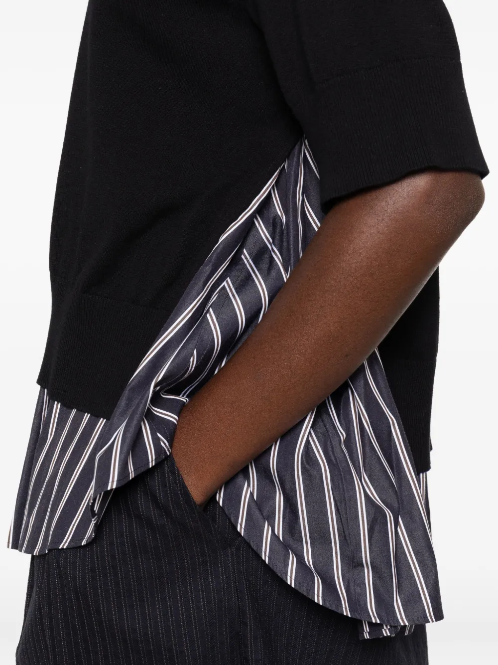 Многослойный топ в полоску SACAI, черный
