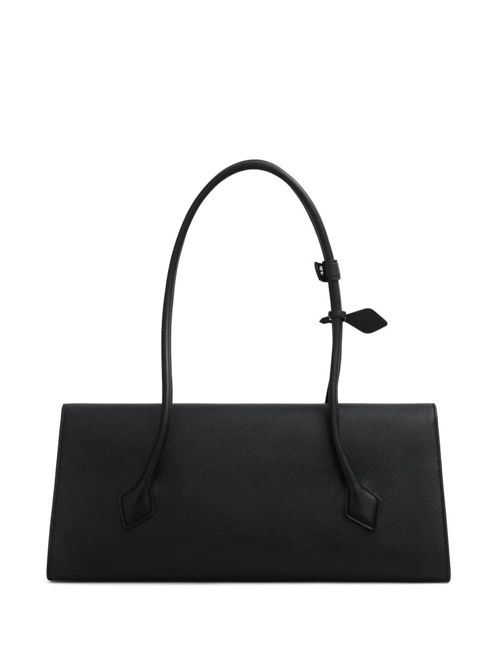 Обратите внимание, что этот товар продаётся окончательно и не подлежит возврату по нашей стандартной политике. Сумка-тоут в форме конверта с клапаном, фирменным удлинённым силуэтом Le Teckel. Длинные трубчатые ручки с декоративными завязками. Два больших клина с магнитной застёжкой и один карман на двойной молнии. Блестящая зернистая телячья кожа. Размеры (см): Д 40 x В 17 x Г 13.