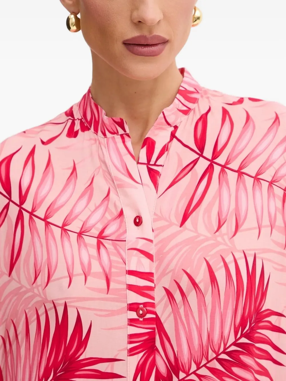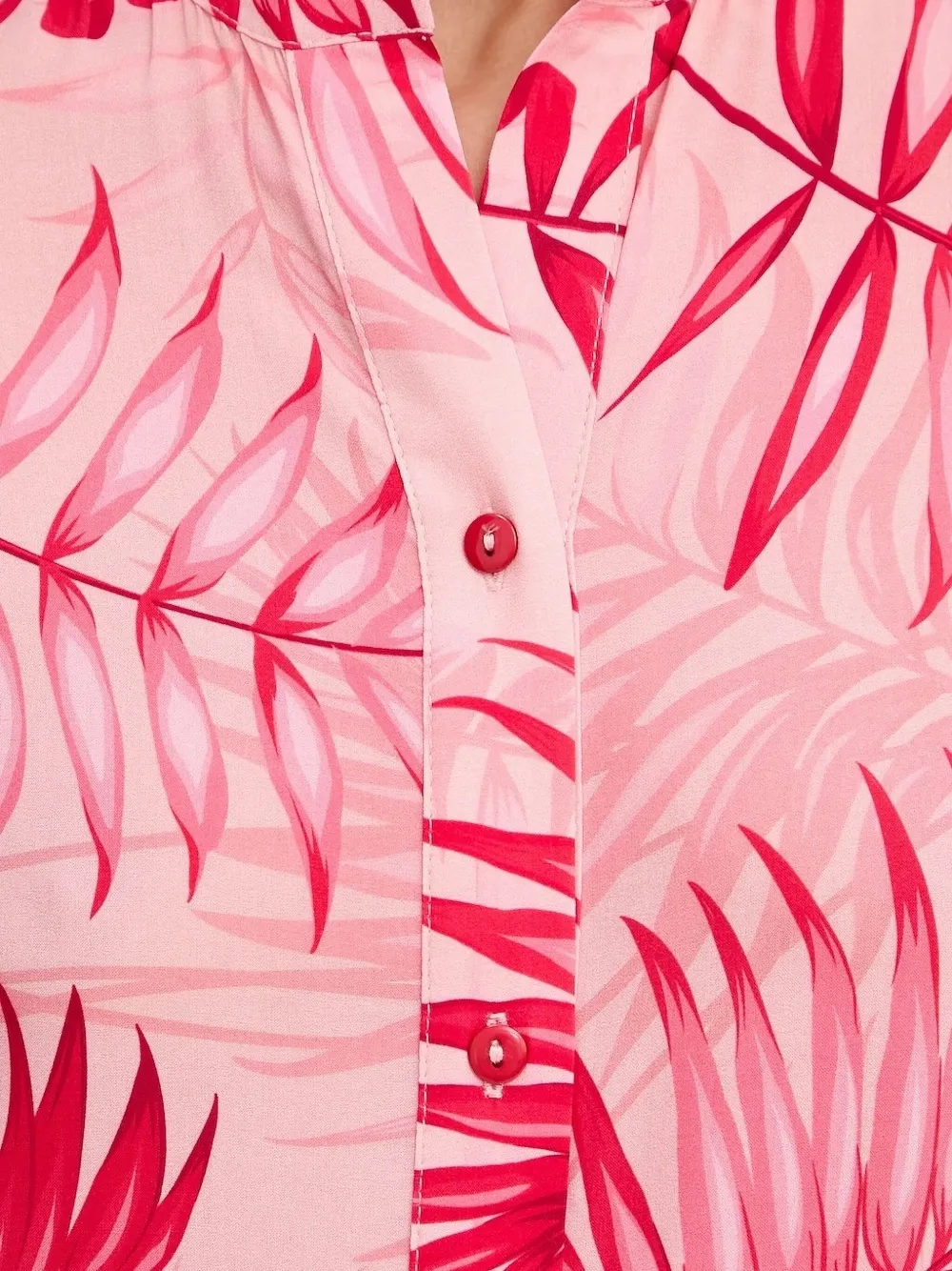 Застежка на пуговицы спереди с принтом розовых листьев, воротник-стойка, короткие рукава