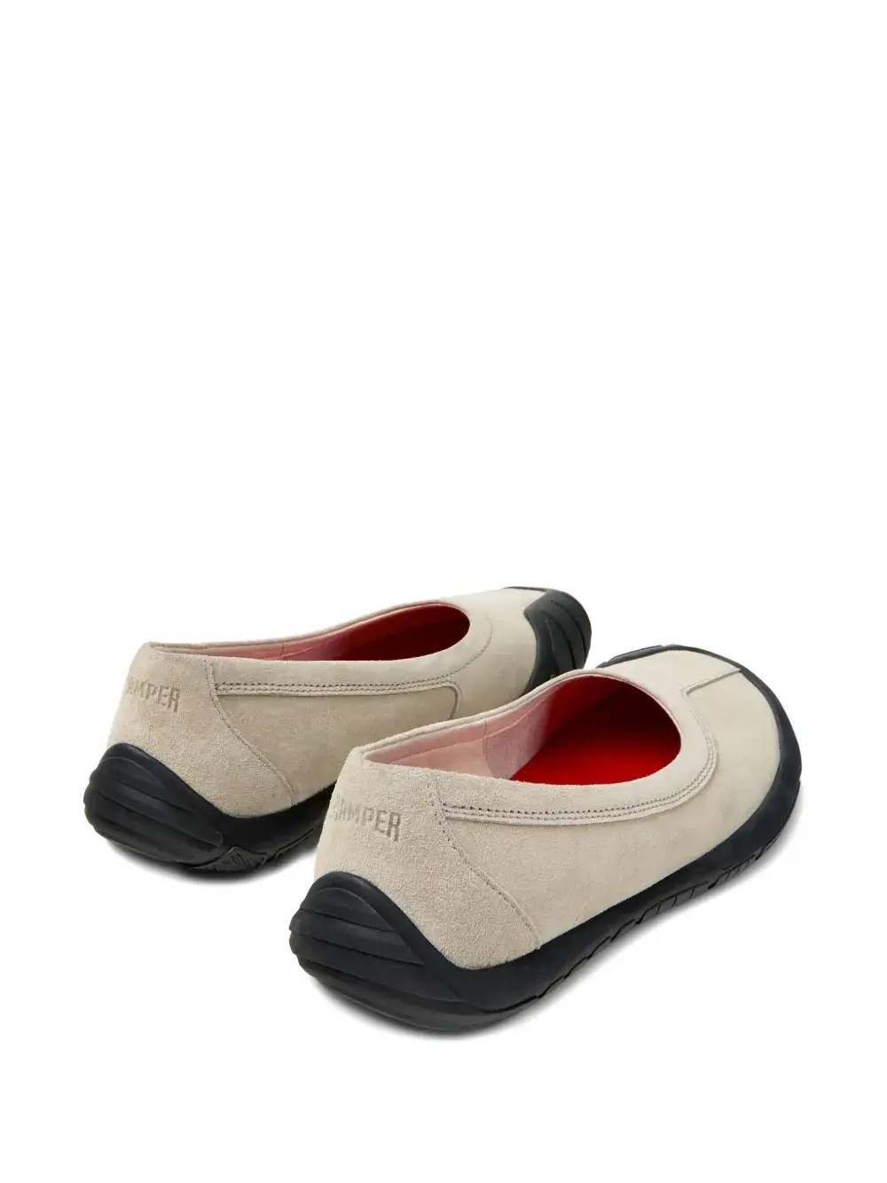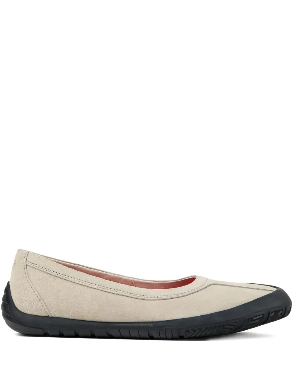 Туфли из светло-бежевого нубука с круглым носком и плоской подошвой, резиновая подошва без застежек