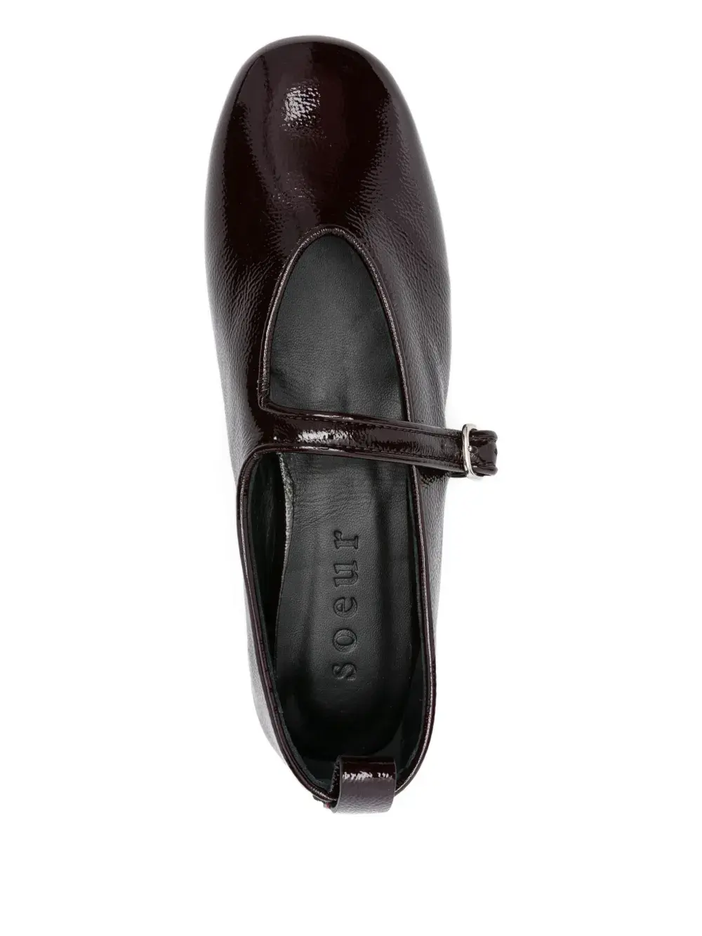Красная телячья кожа, застежка на пряжку, миндалевидный носок, плоская подошва