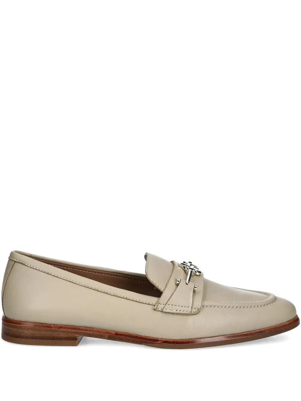 Верх из бежевой кожи, металлическая пряжка, миндалевидный носок, плоская подошва, модель slip-on