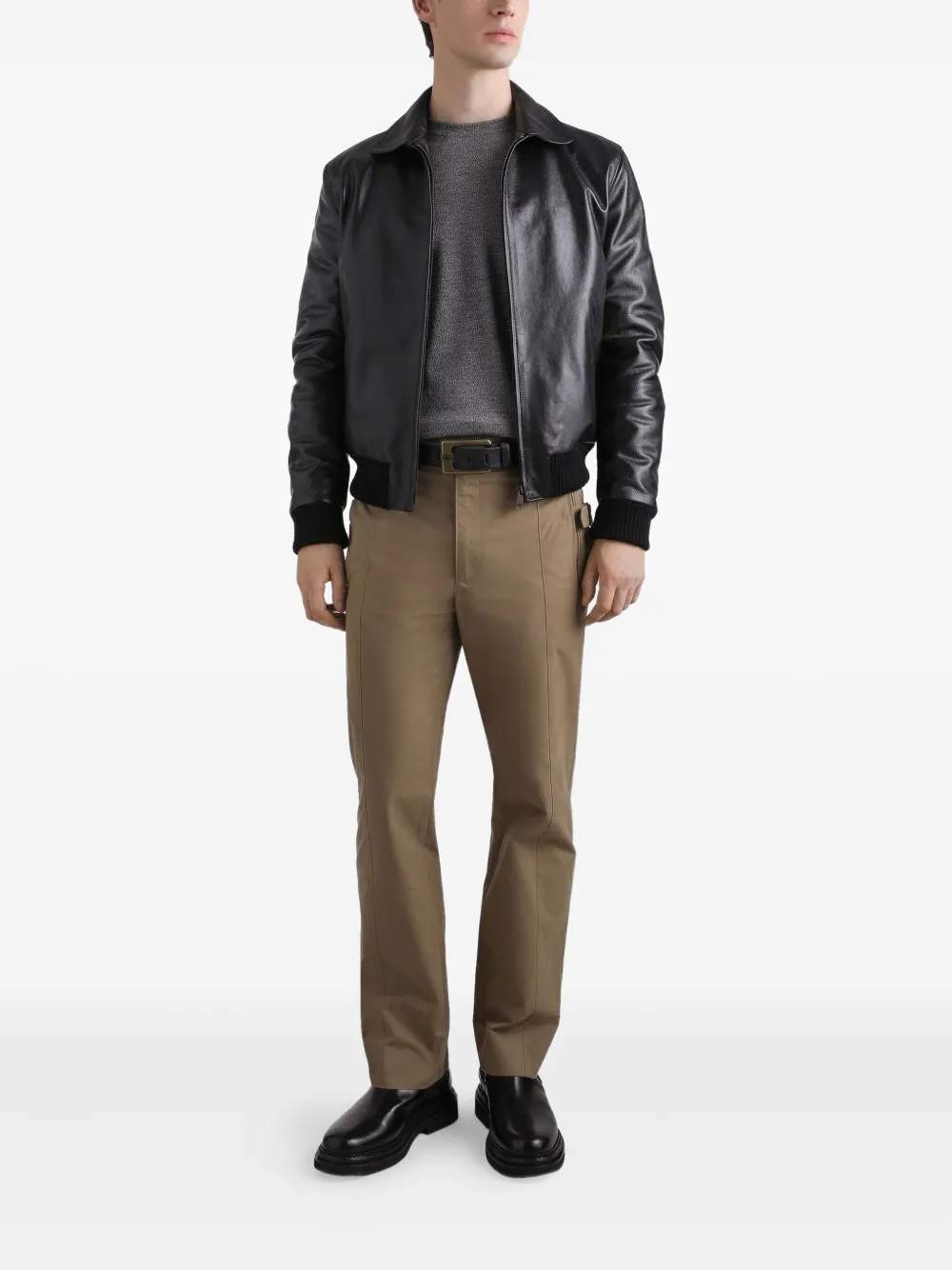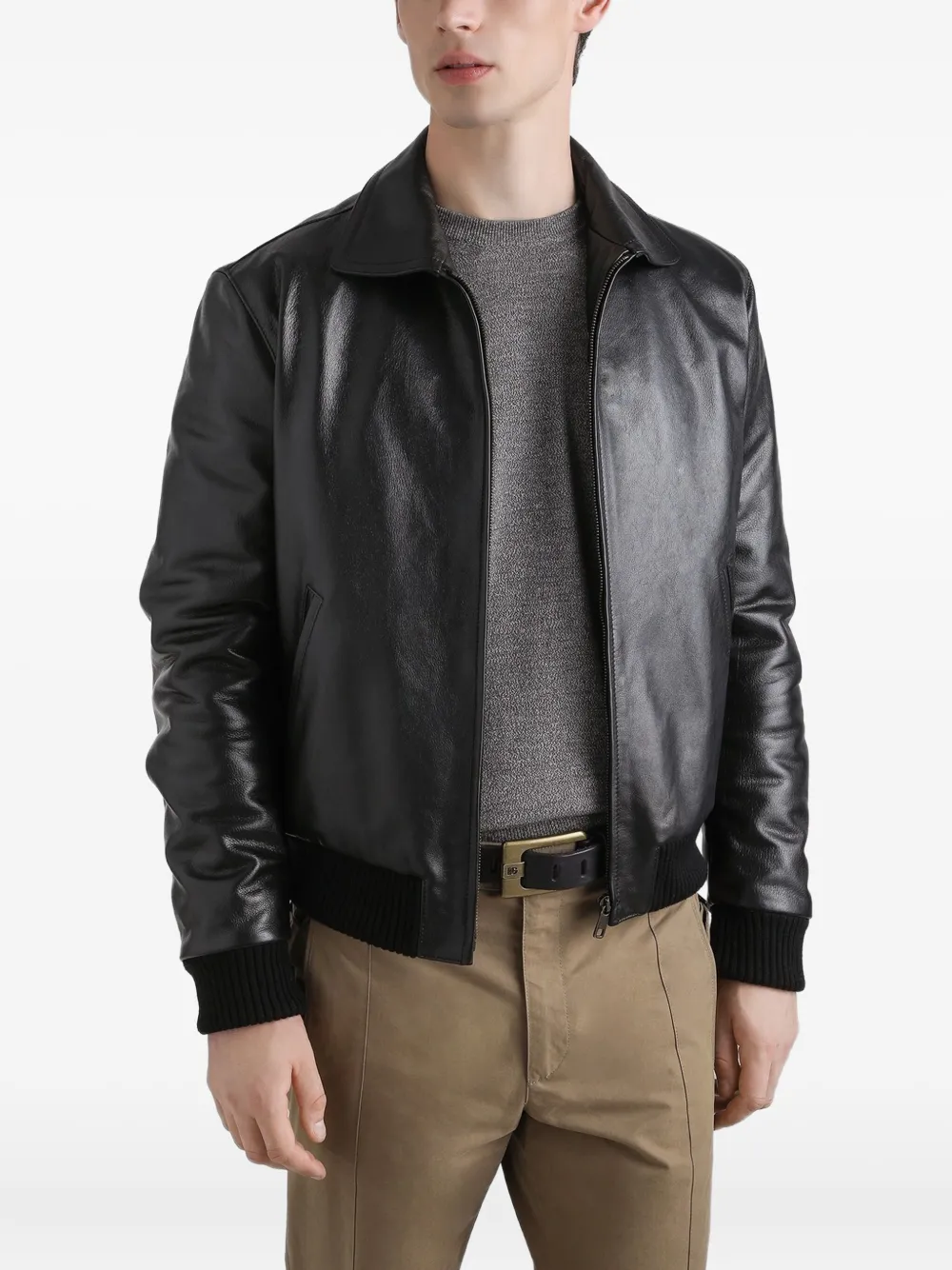 Кожаный бомбер на молнии DOLCE & GABBANA, черный