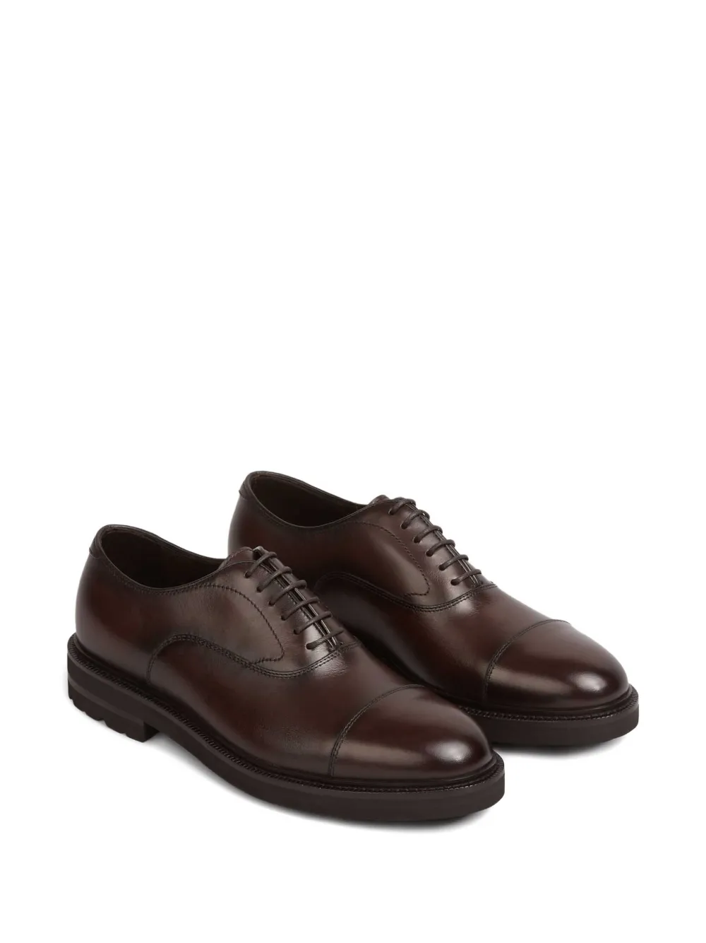 Темно-коричневые кожаные туфли со шнуровкой и резиновой подошвой