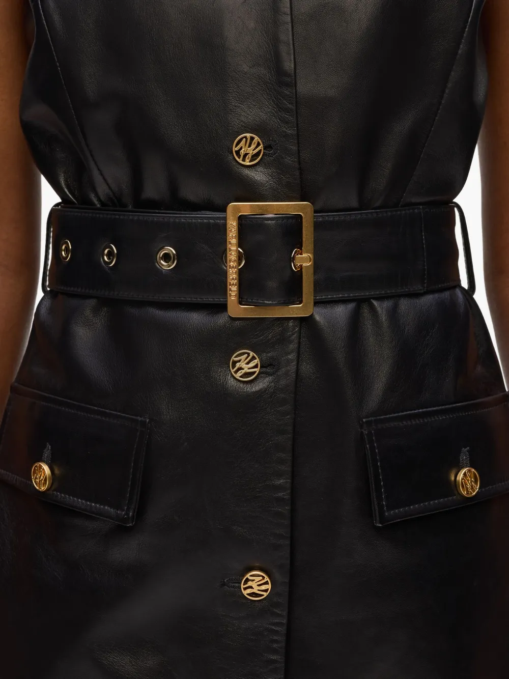 Кожаное платье с поясом KARL LAGERFELD, черный