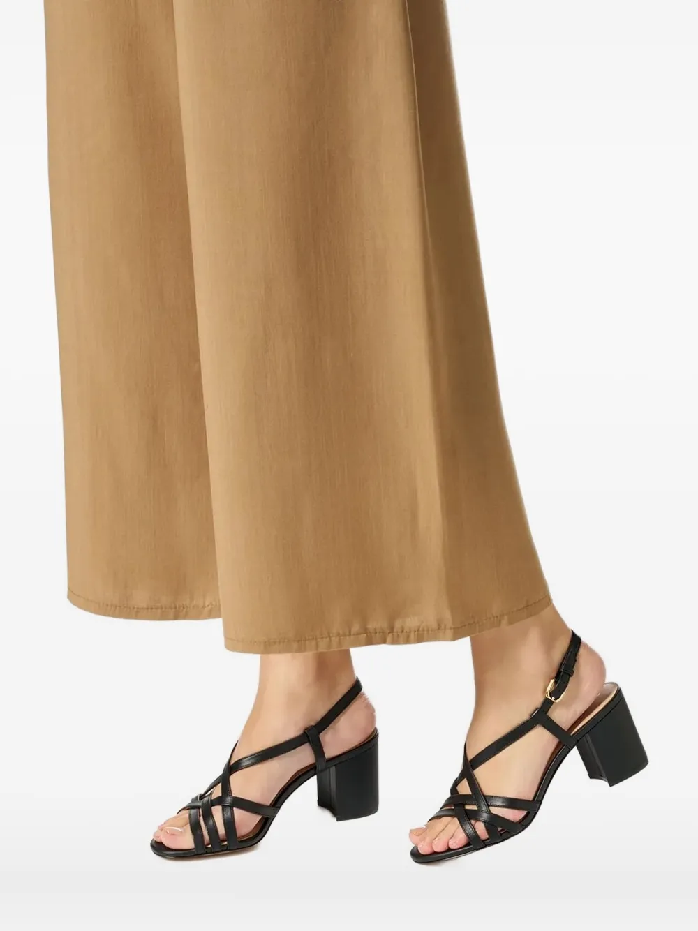 Черные кожаные ремешки крест-накрест, застежка на пряжку, ремешок на щиколотке, блочный каблук, открытый круглый носок, фирменная стелька