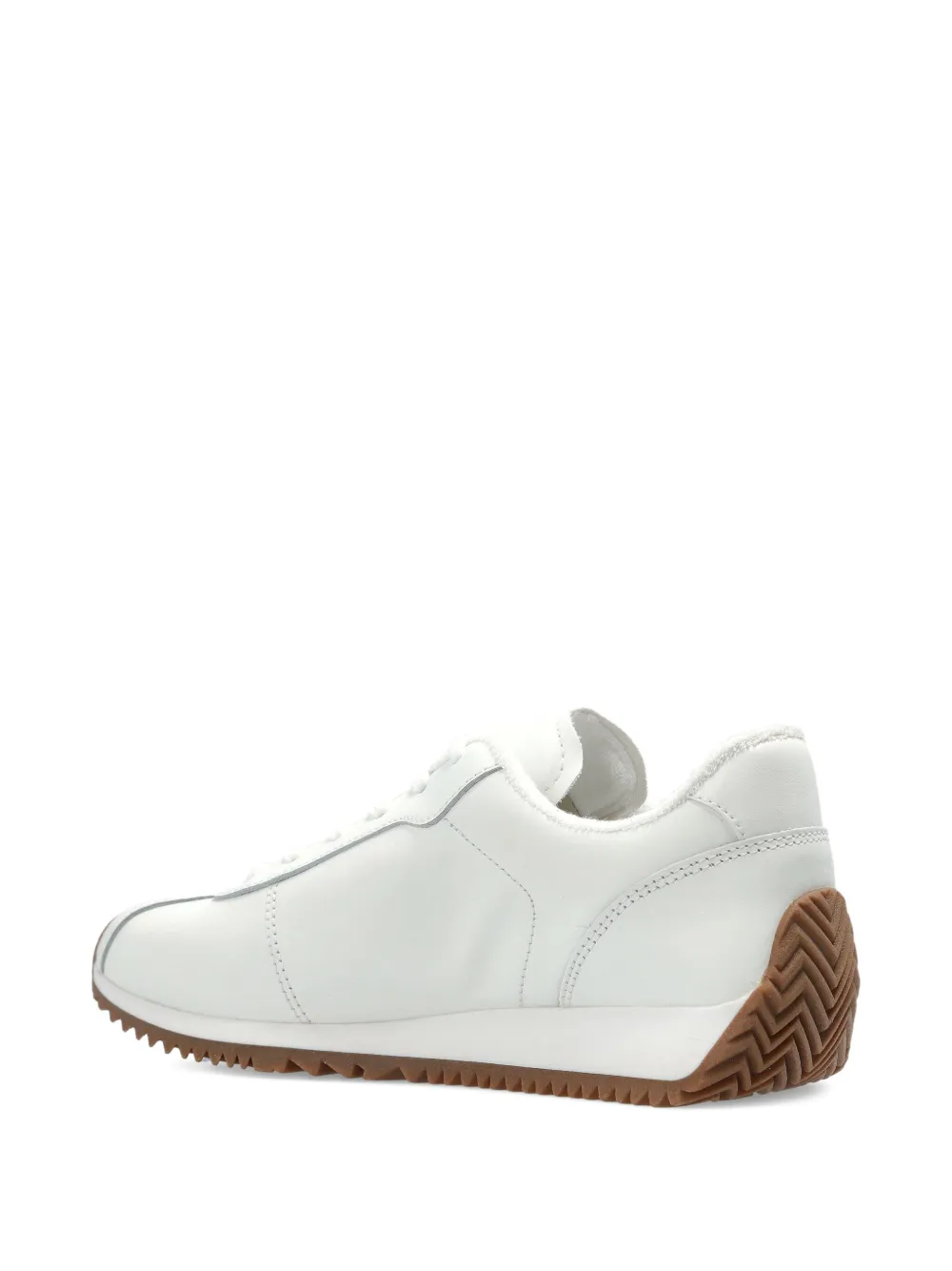 Туфли из белой телячьей кожи, со шнуровкой, на плоской подошве с круглым носком и текстурированной подошвой.