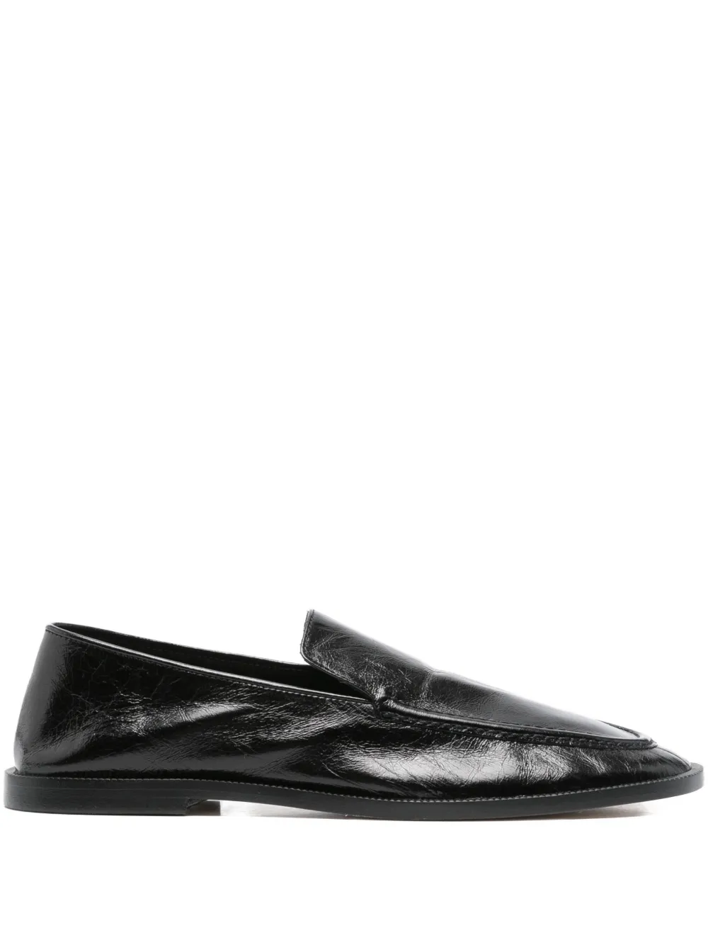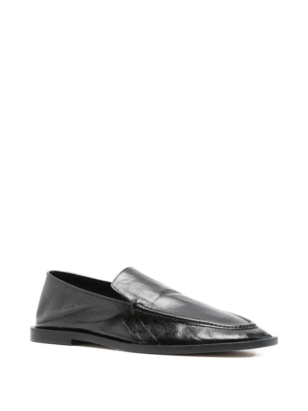 Туфли из черной телячьей кожи, с круглым носком и плоской подошвой