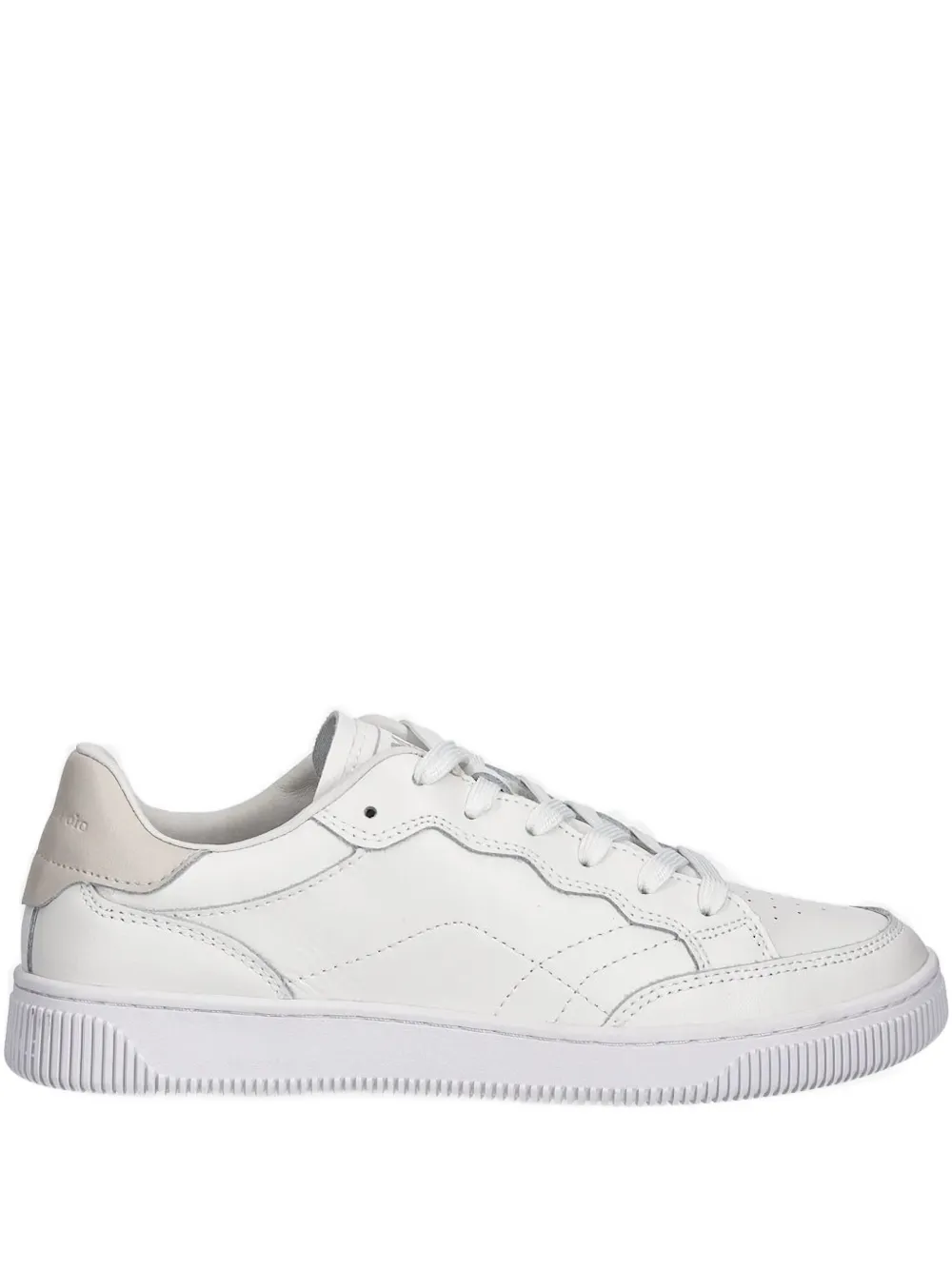 Верх из белой кожи, вставки, шнуровка, плоская подошва.