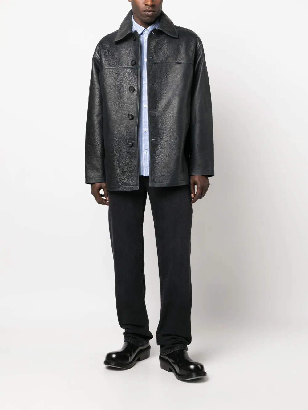 Кожаная куртка-рубашка Wood Wood, синий 104 345₽