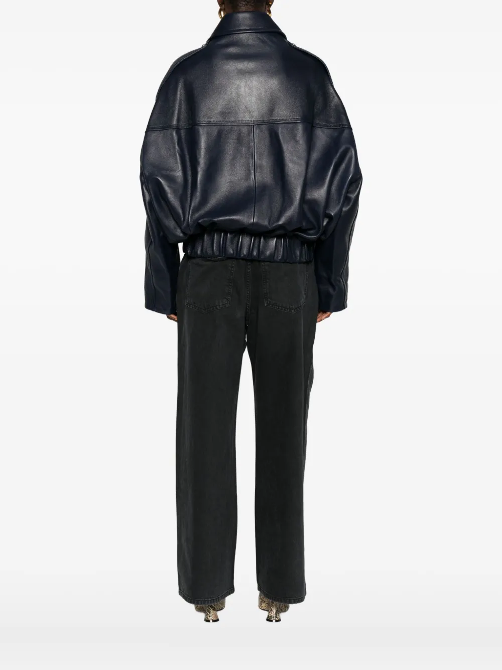 Кожаная куртка-бомбер на молнии KHAITE, синий 633 744₽