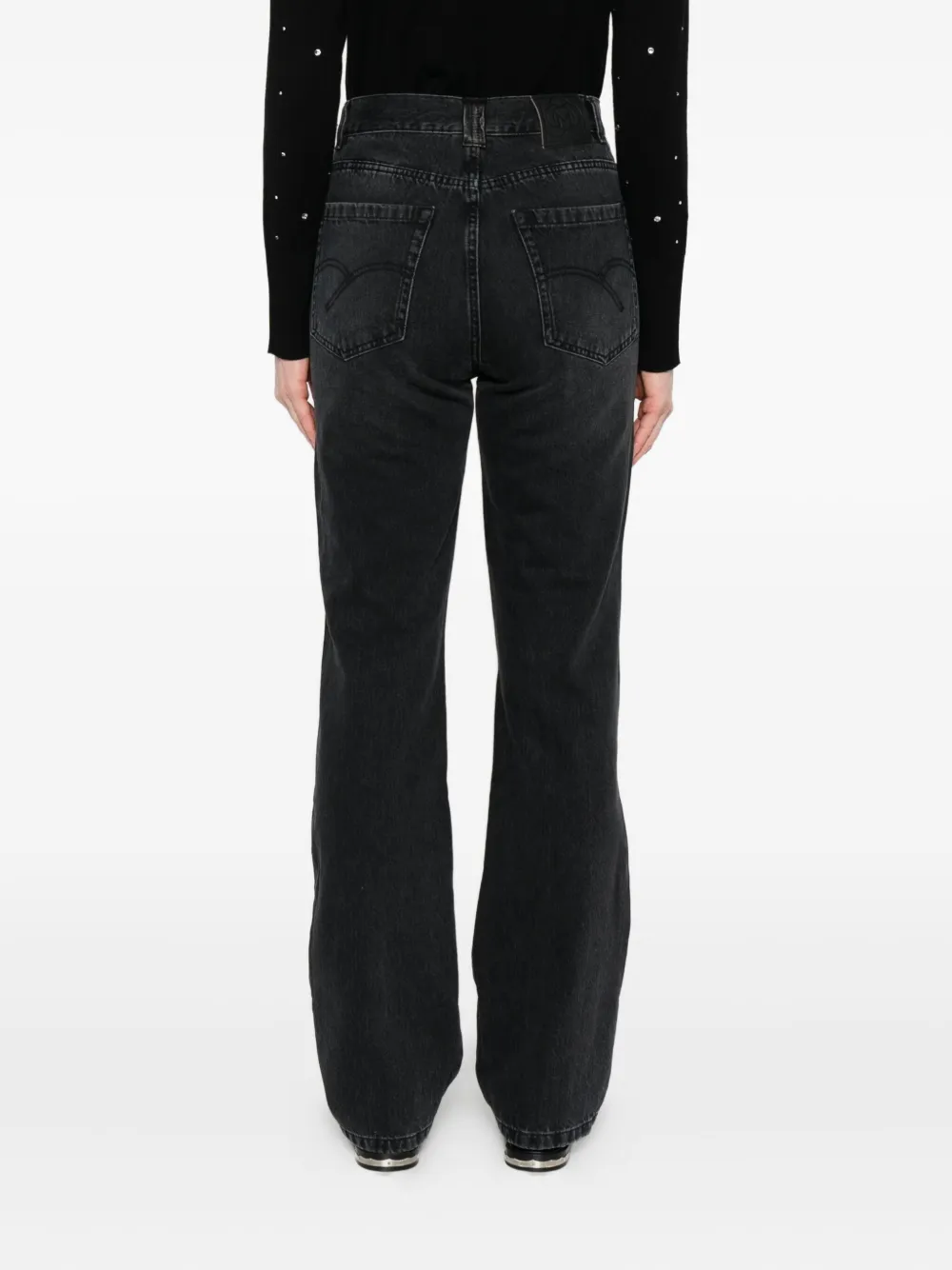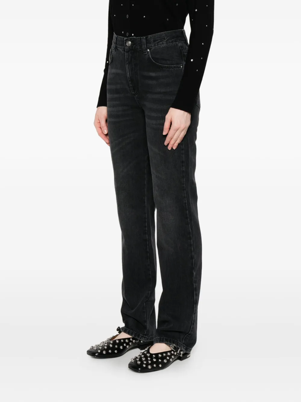Черные кожаные карманы, пять карманов, застежка на пуговицы, прямой крой, средняя посадка на талии
