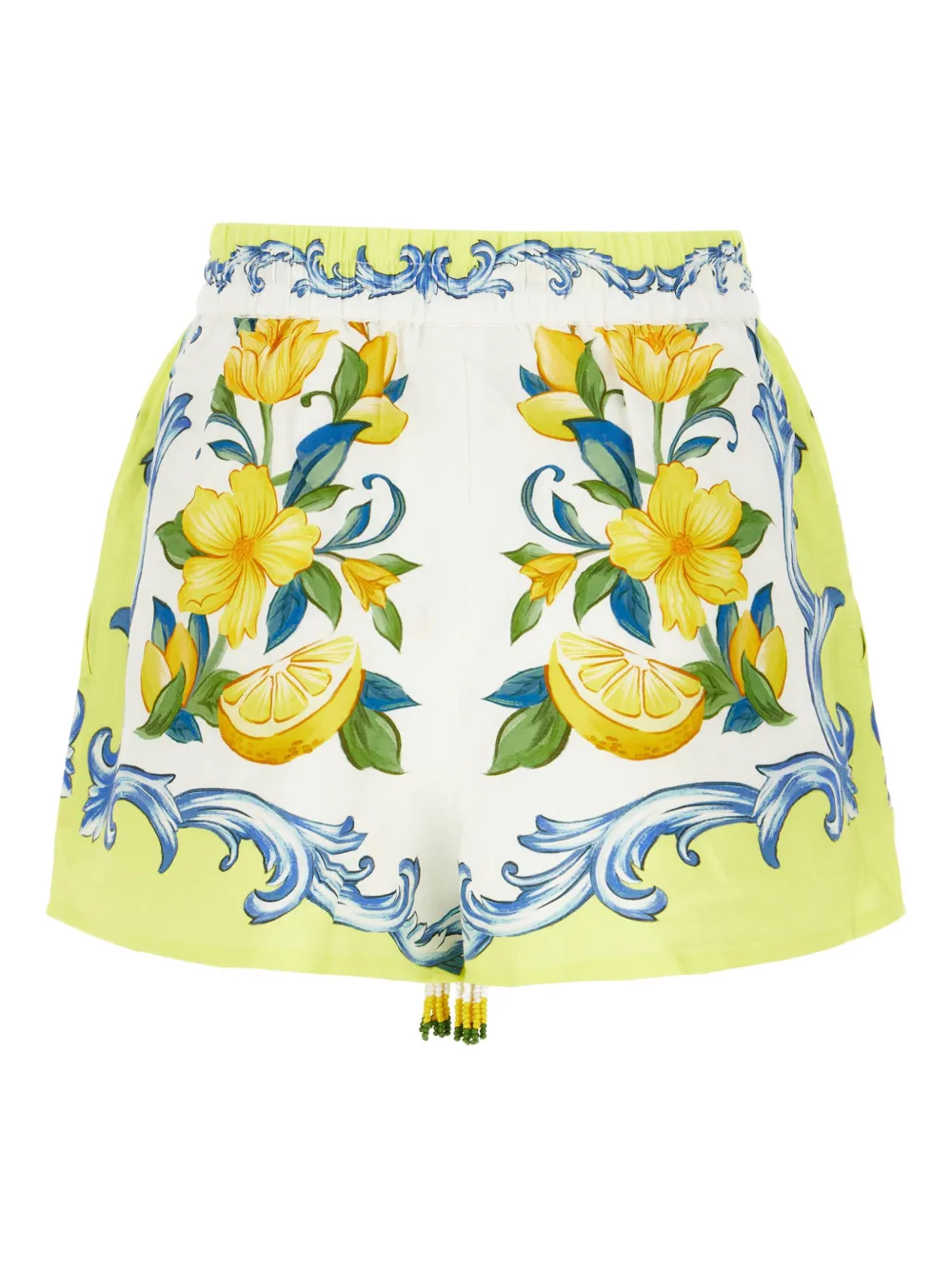 Шорты с лимонным принтом и бисером FARM Rio, белый