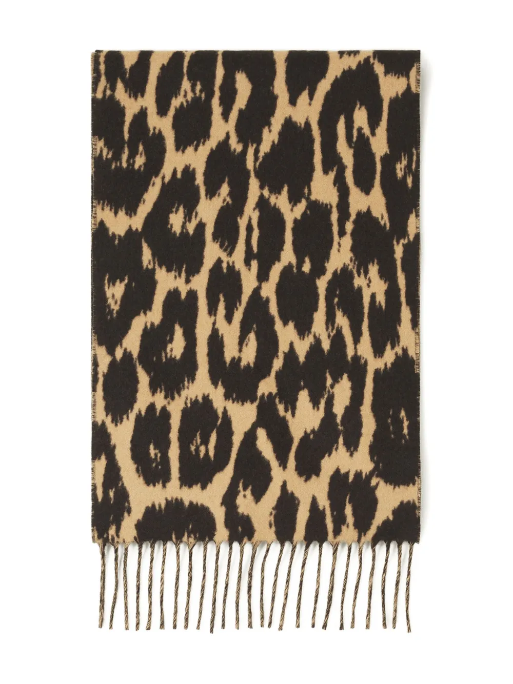 Шарф с леопардовым принтом и бахромой Lanvin, нейтральный