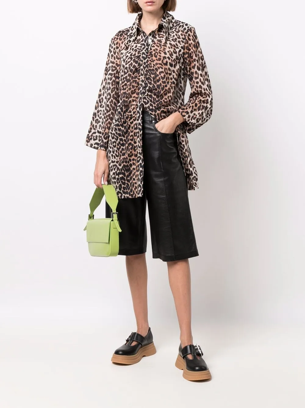 Рубашка с леопардовым принтом GANNI, коричневый 15 072₽