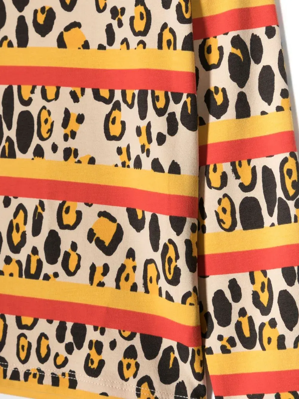 Бежевый, разноцветный, стрейчевый органический хлопок, сплошной леопардовый принт, принт в горизонтальную полоску, круглый вырез, длинные рукава и прямой подол. Ответственный выбор: Этот товар как минимум на 50% состоит из органических материалов.