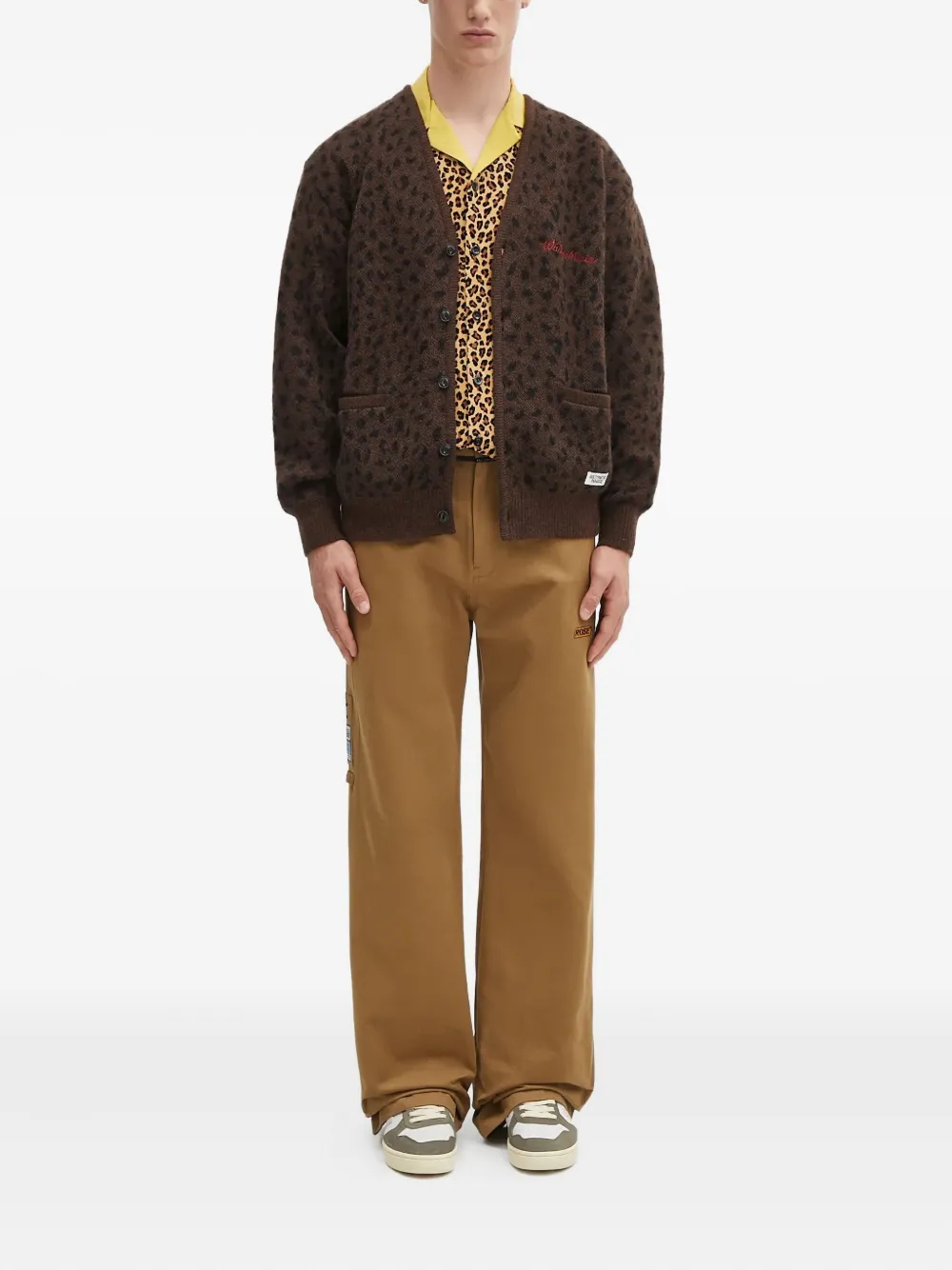 Кардиган с леопардовым принтом WACKO MARIA, коричневый