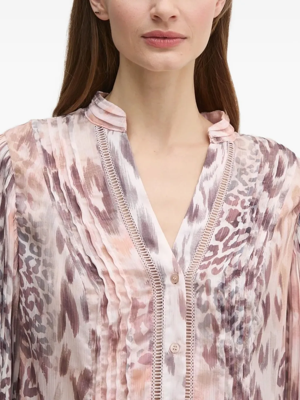 Застежка на пуговицы розового/коричневого цвета спереди, леопардовый принт, длинные рукава, застегивающиеся на пуговицы манжеты