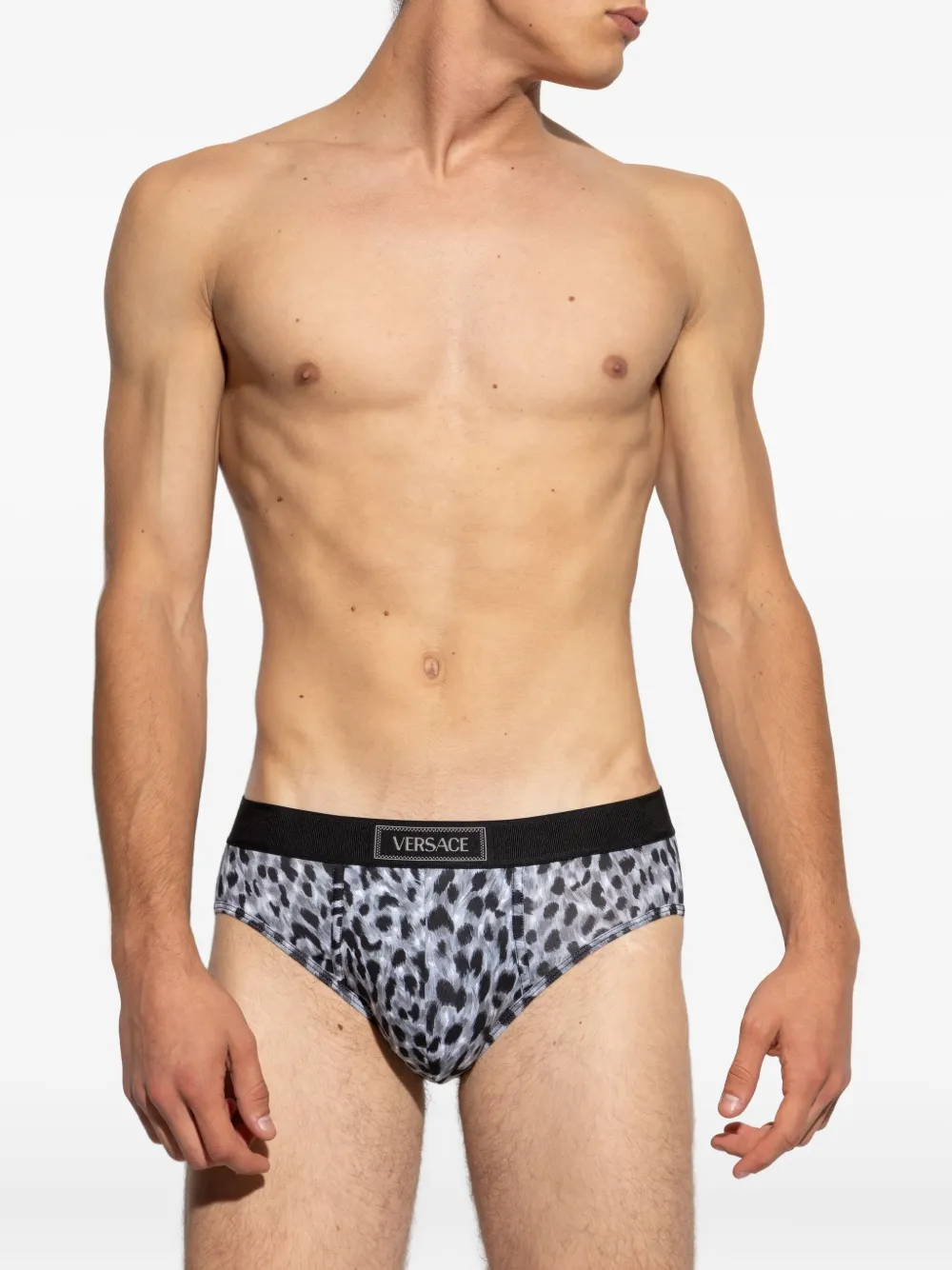 Трусы с леопардовым принтом на поясе VERSACE, серый