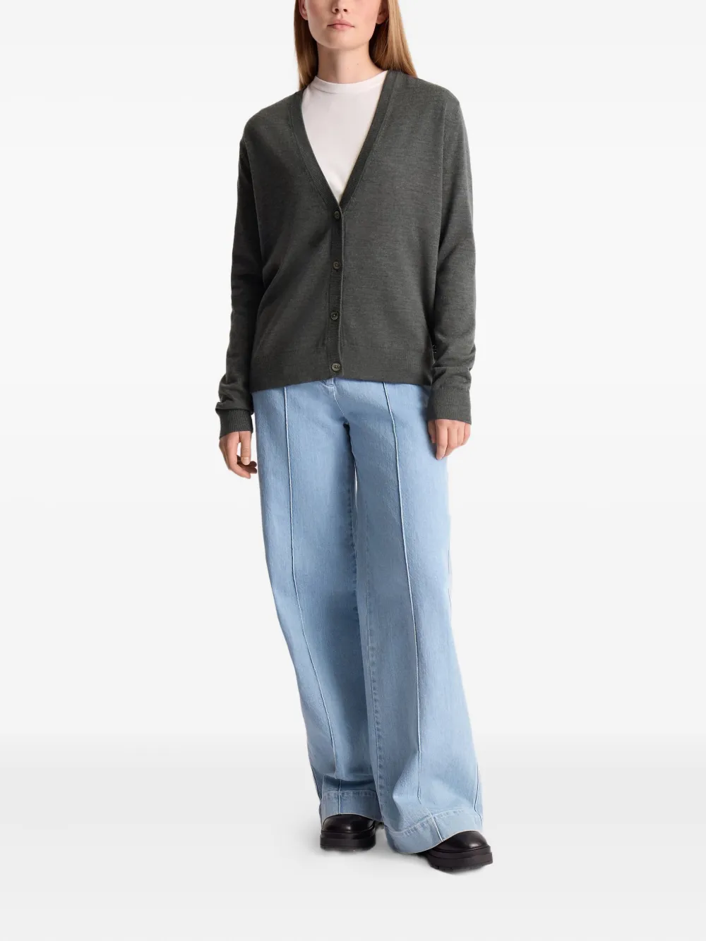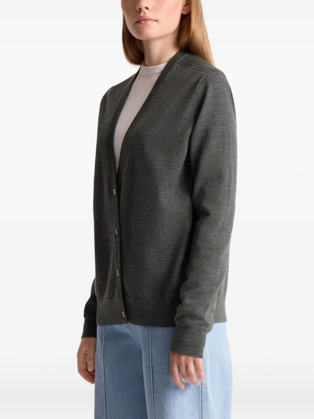 Серый V-образный вырез спереди, застежка на пуговицы, ребристая отделка