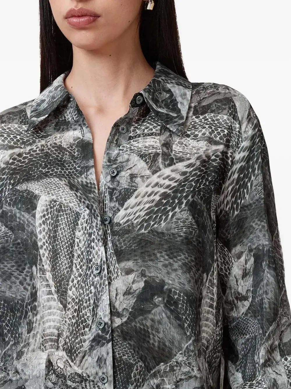 Серый змеиный принт, застежка на пуговицы спереди, классический воротник, длинные рукава