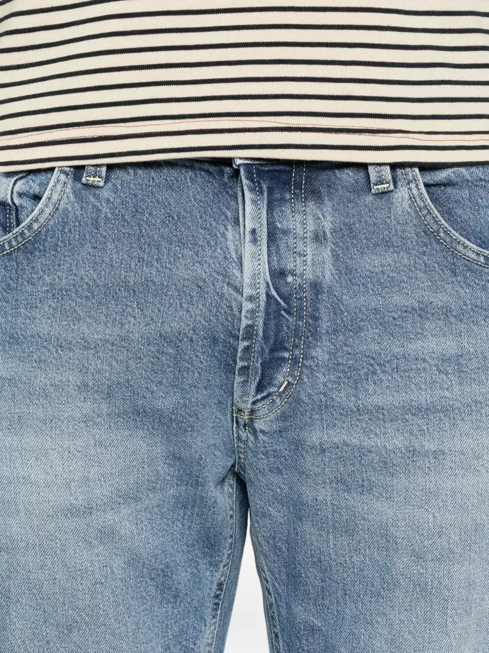 Светло-голубой хлопковый фасон с пятью карманами, застежкой на пуговицы, классический прямой крой, средняя посадка