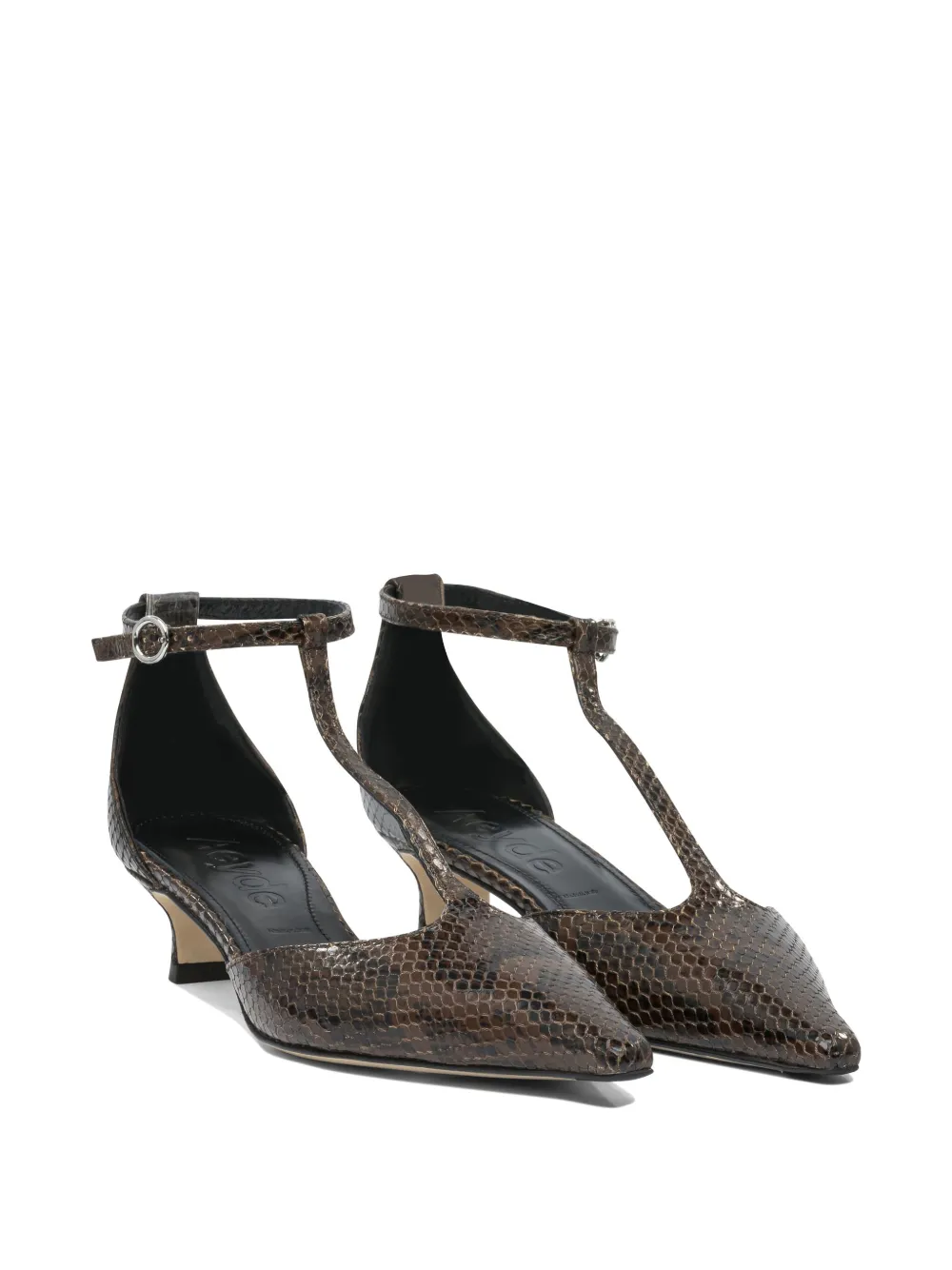 Коричневый ремешок на щиколотке с заостренным носком и принтом змеиной кожи