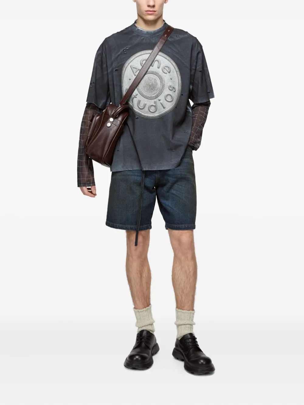Футболка с потертым логотипом Acne Studios, черный