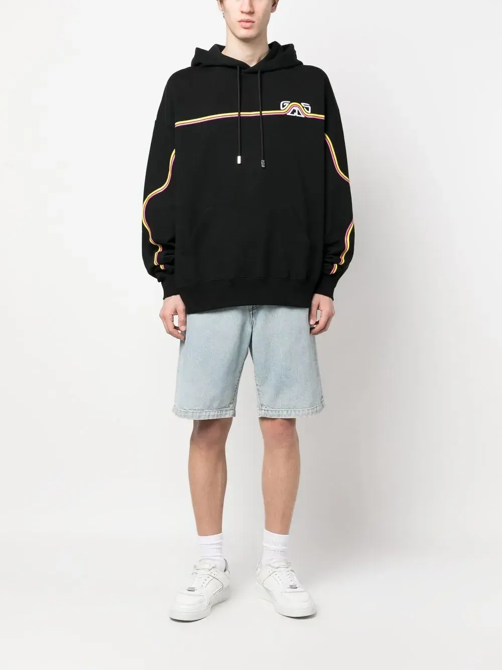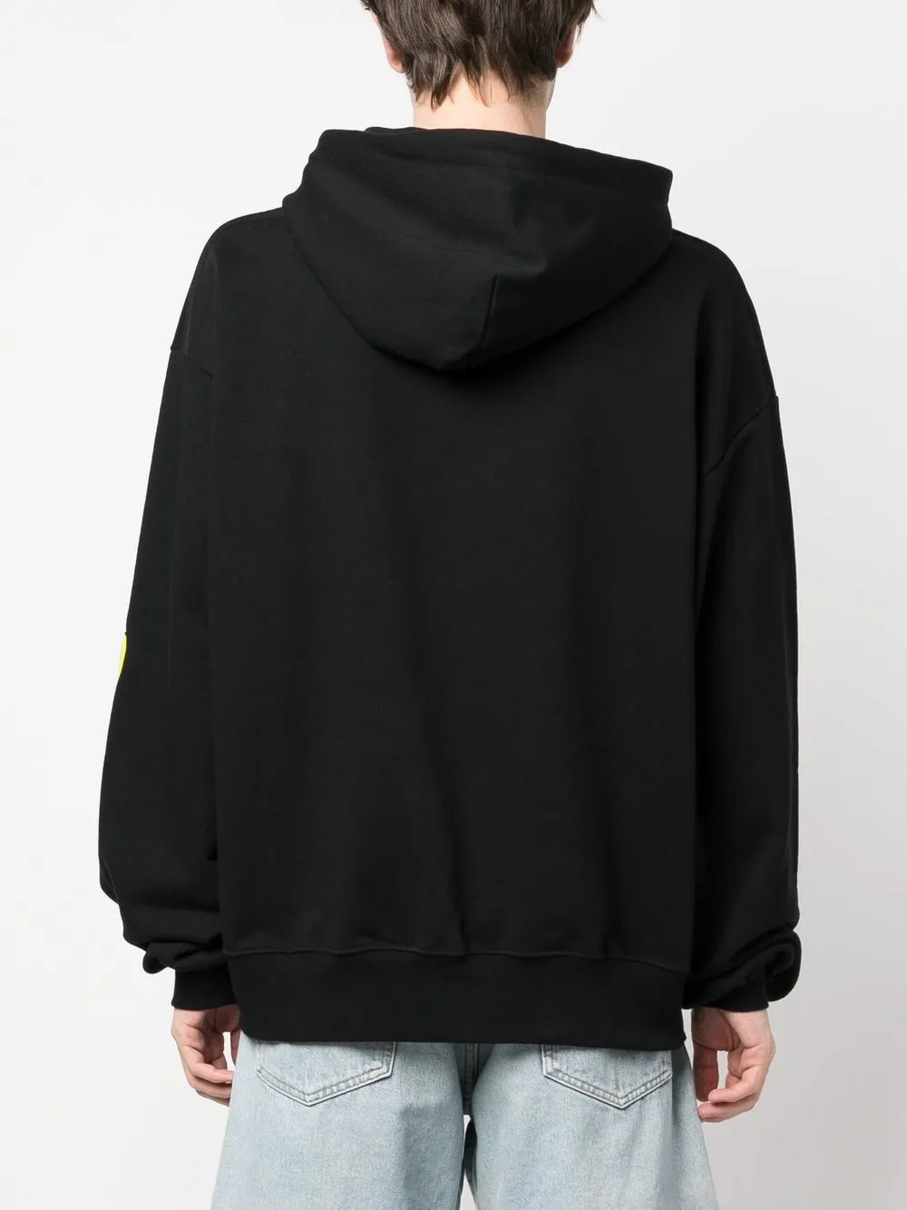 Принт с логотипом на груди, затягивающийся на шнурок капюшон, длинные рукава и накладной карман сбоку.
