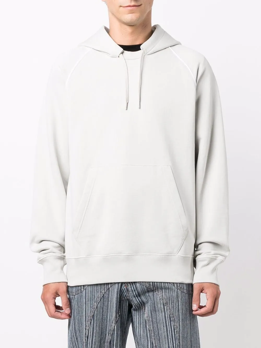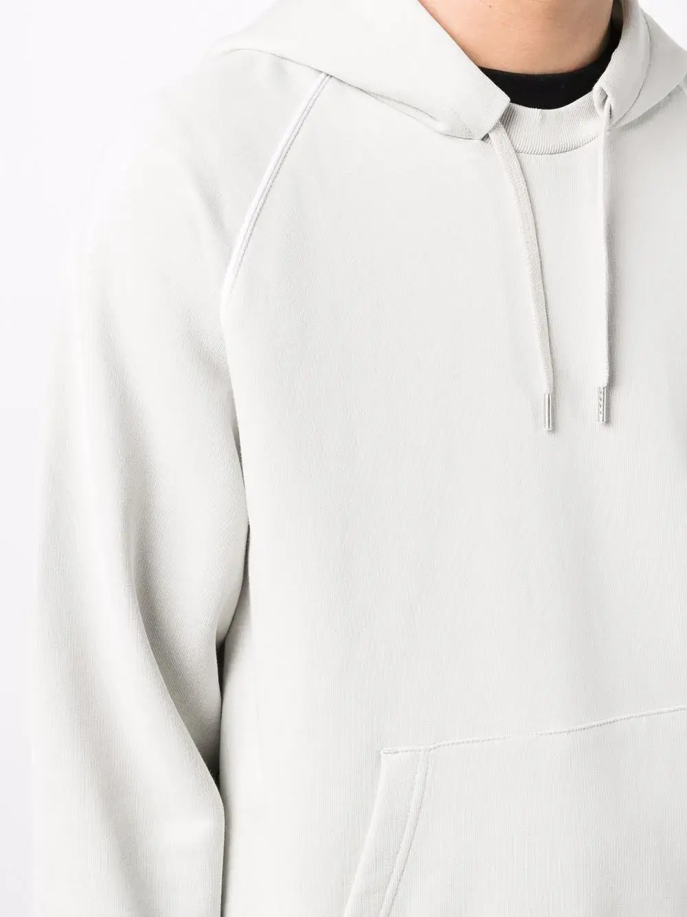 Принт с логотипом сзади, затягивающийся на шнурок капюшон, длинные рукава реглан, карман-муфта и края в рубчик.