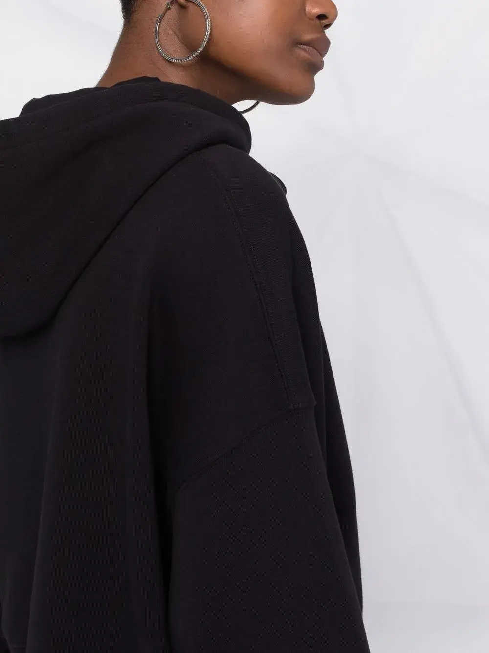 Принт с логотипом на груди, затягивающийся на шнурок капюшон, длинные рукава, эластичные манжеты и эластичный подол. Цвет: черный.