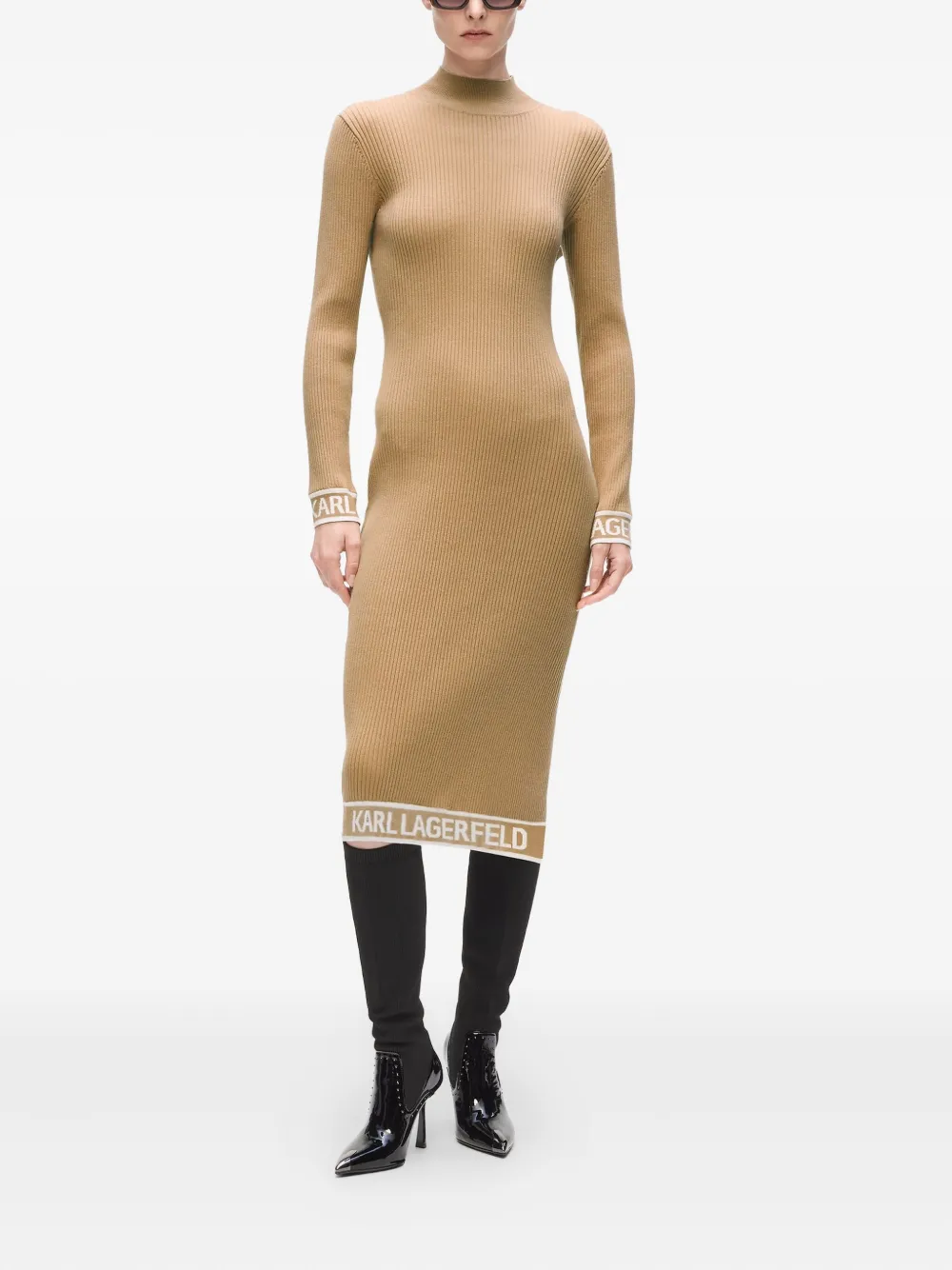 Платье миди в рубчик с логотипом KARL LAGERFELD, коричневый