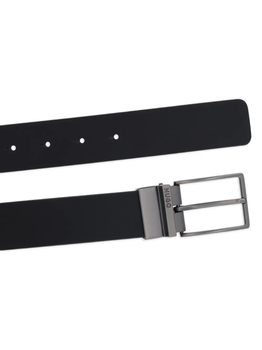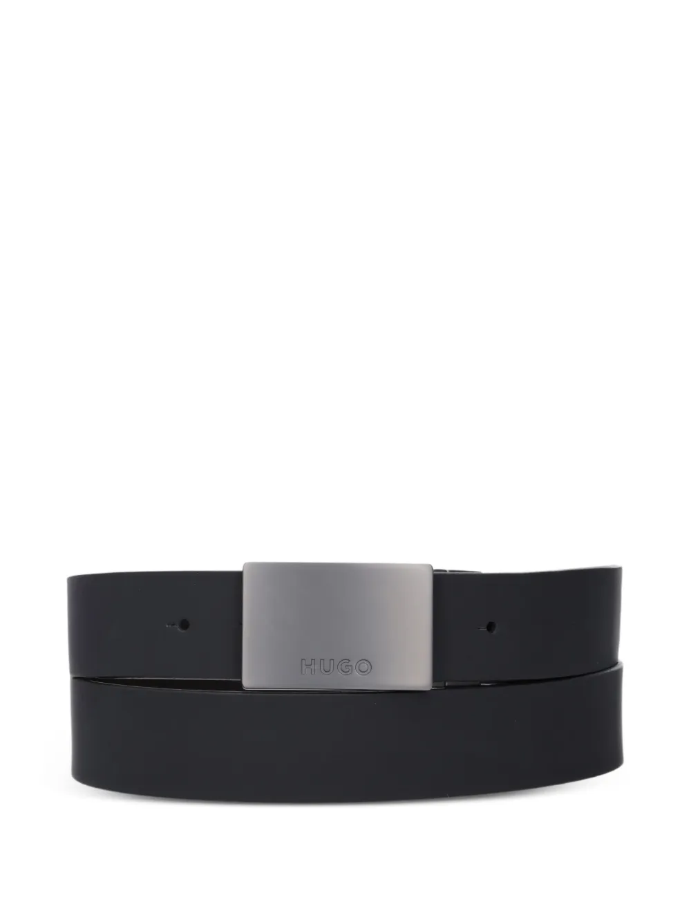 Кожаный ремень с пряжкой-логотипом HUGO, черный