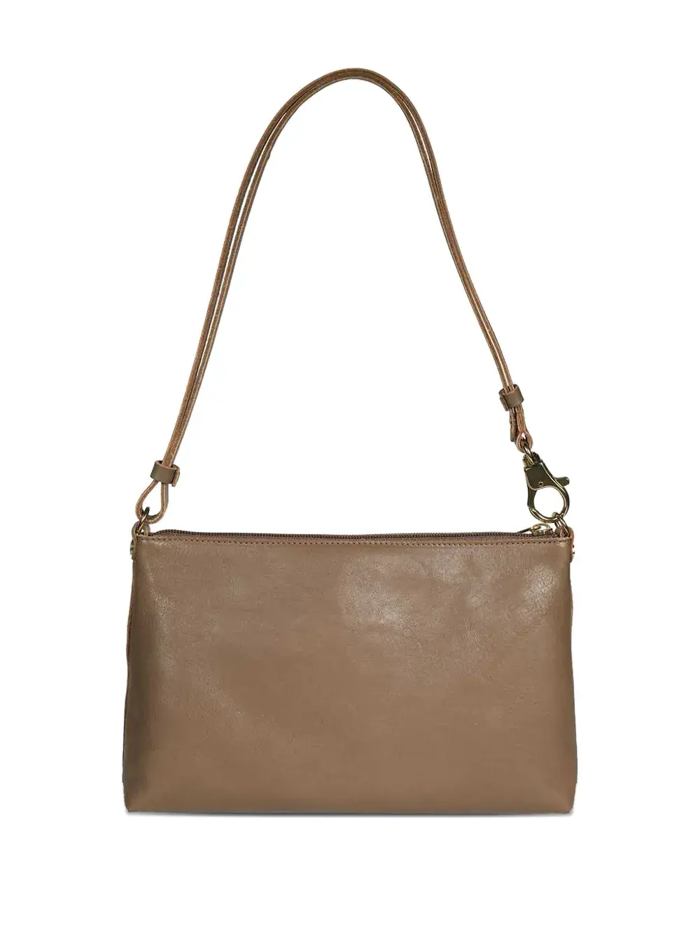 Коричневый верх застегивается на молнию, регулируемый съемный кожаный ремешок, логотип спереди, застежка на кожаные пуговицы
