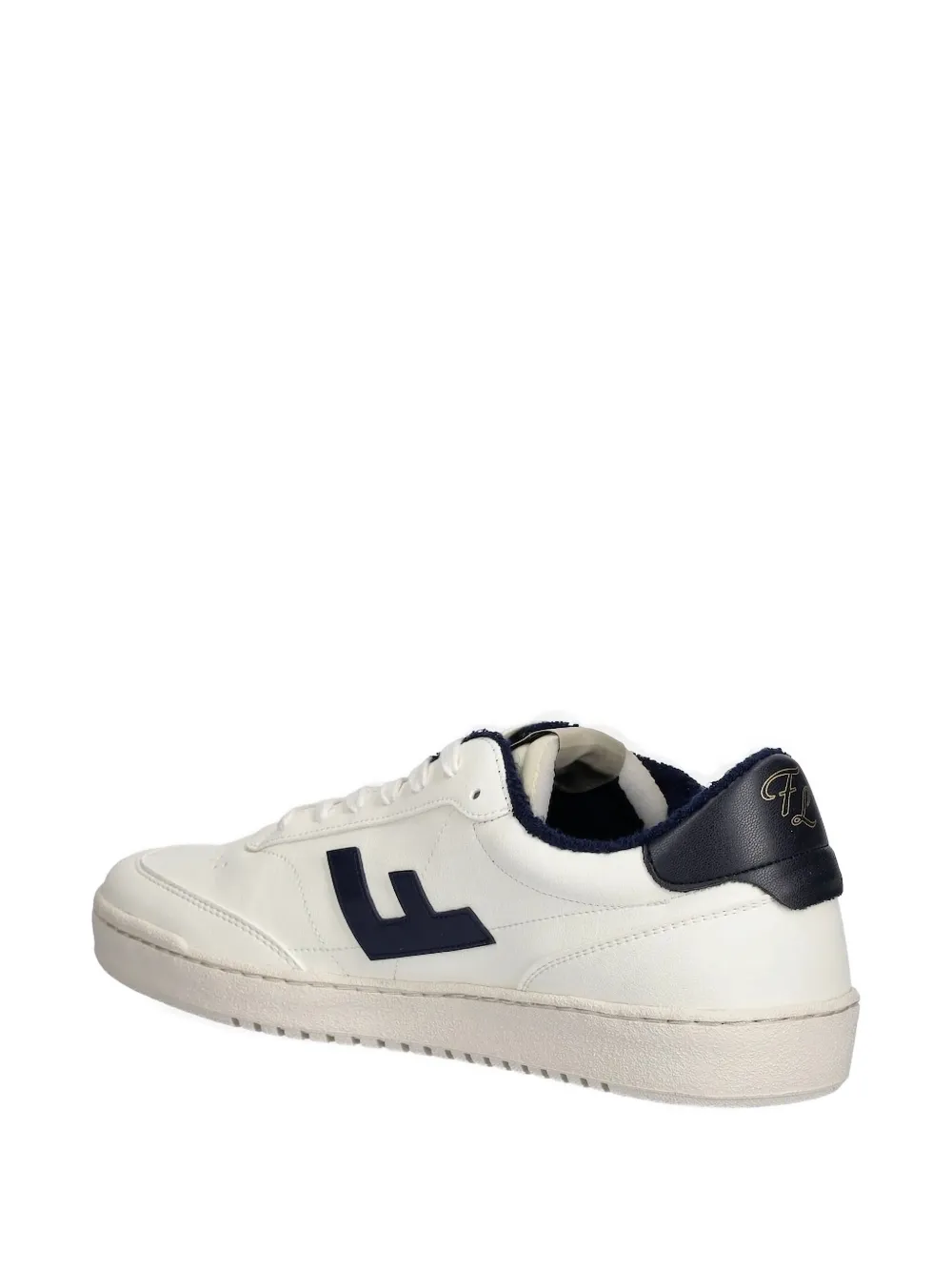 Белый, темно-синий логотип, мягкий воротник, плоские шнурки, резиновая подошва