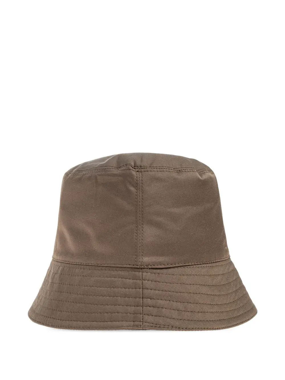 Темно-коричневый вышитый логотип, плоская тулья, широкие поля, форма ведра, тонкая строчка
