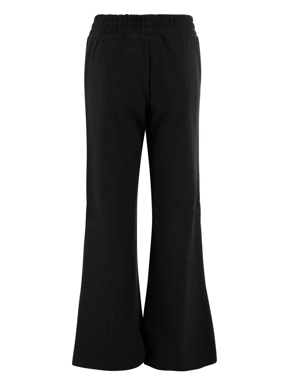 Расклешенные черные брюки, эластичный пояс, боковые швы, вышитый логотип.