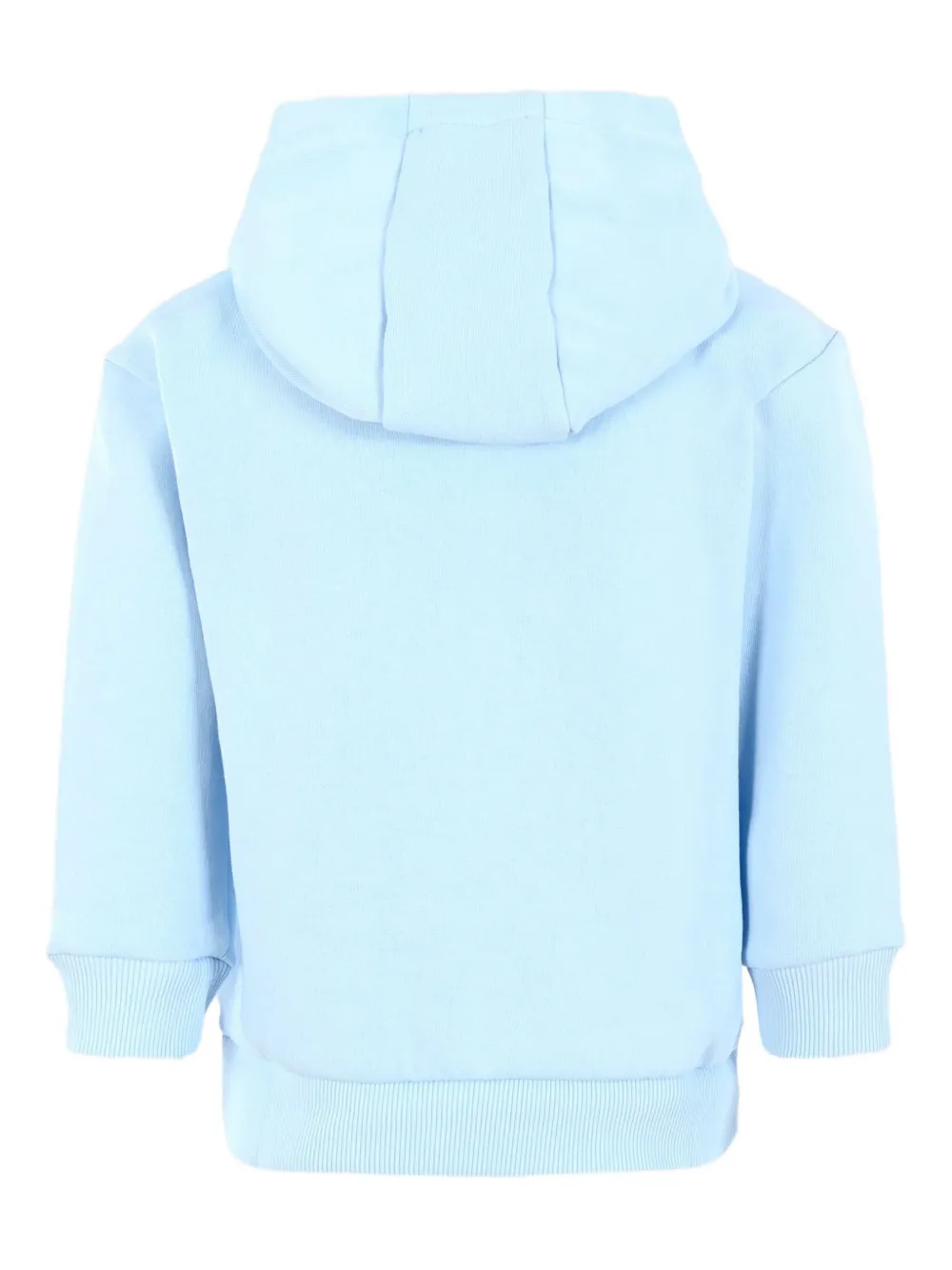 Светло-голубой капюшон, карман-кенгуру, длинные рукава, ребристые манжеты, вышитый логотип.