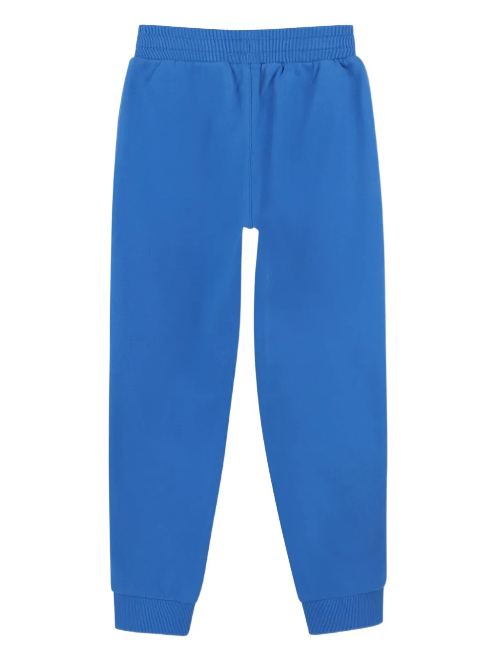 Синий эластичный пояс, затягивающийся на шнурок, манжеты по низу, вышитый логотип по бокам.