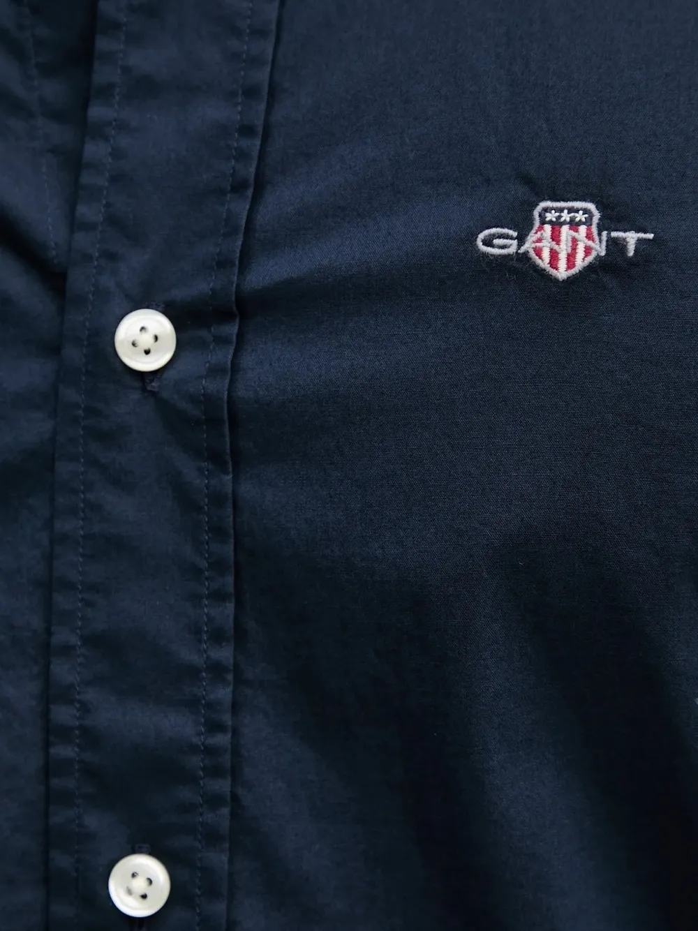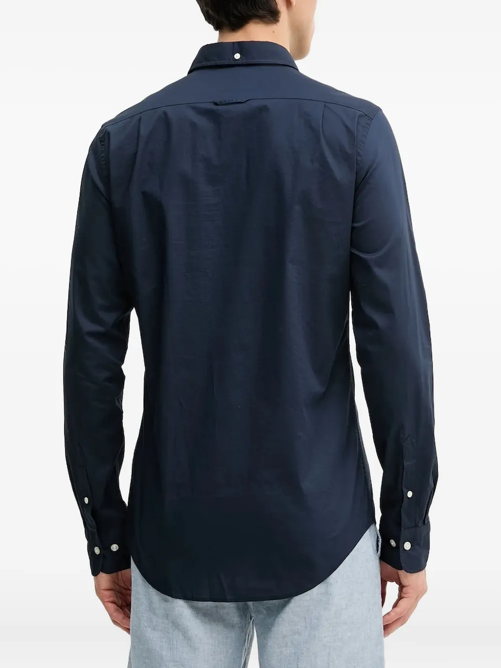 Длинные рукава темно-синего цвета, застежка на пуговицы, вышитый логотип, воротник на пуговицах, манжеты на пуговицах.