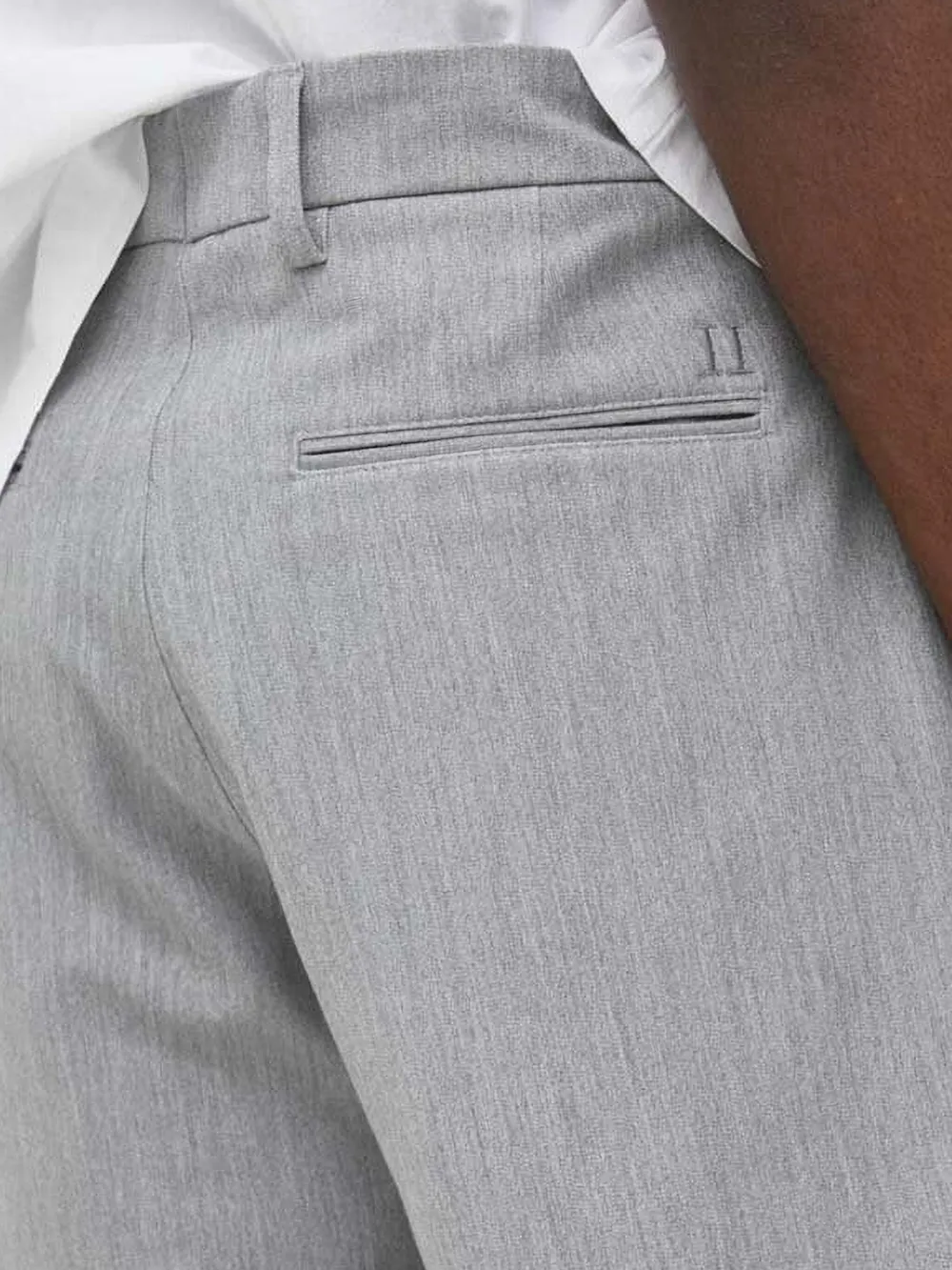 Серый, строгий дизайн, фактурная ткань, плоский перед, вышитый логотип