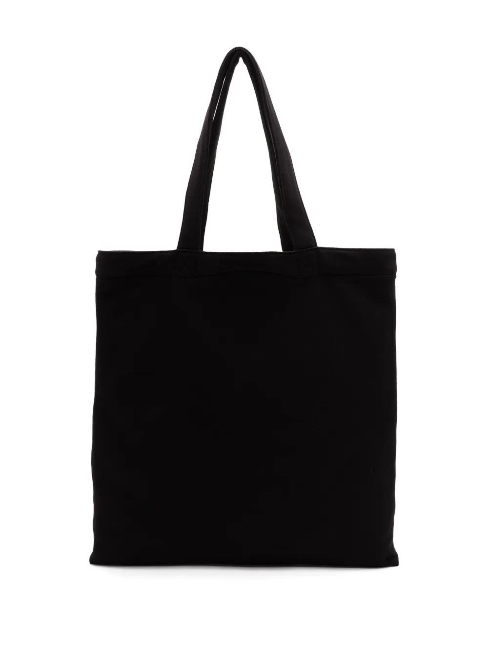 Черный хлопок, вышитый логотип сверху, ручки открытые, прямоугольной формы